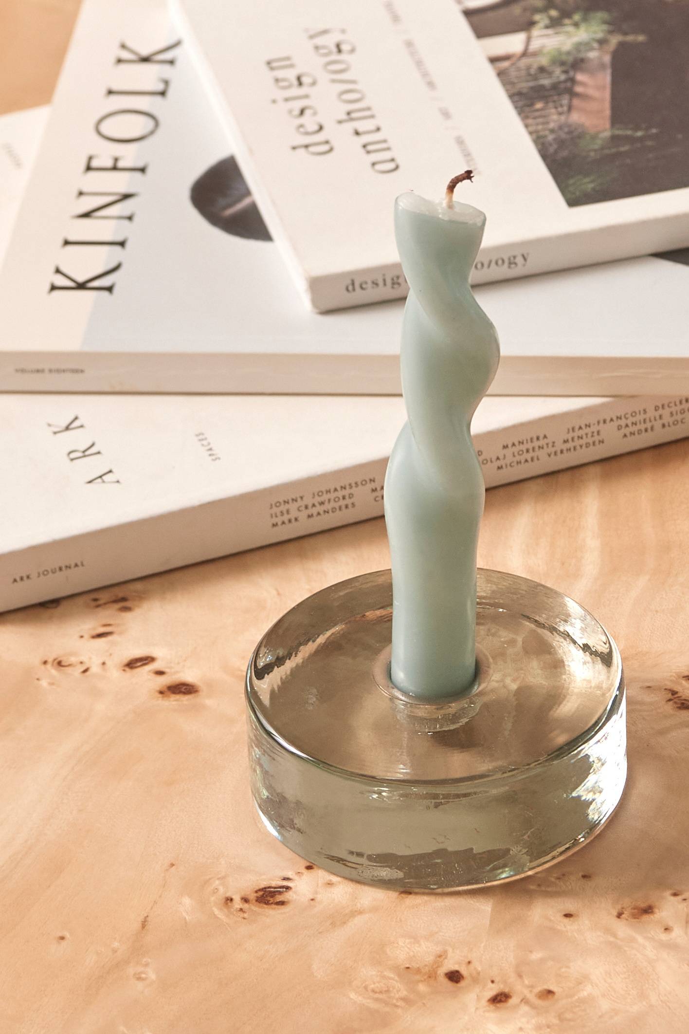 • Pyöreä kynttilänjalka lasista kynttilänpidikkeellä metallista