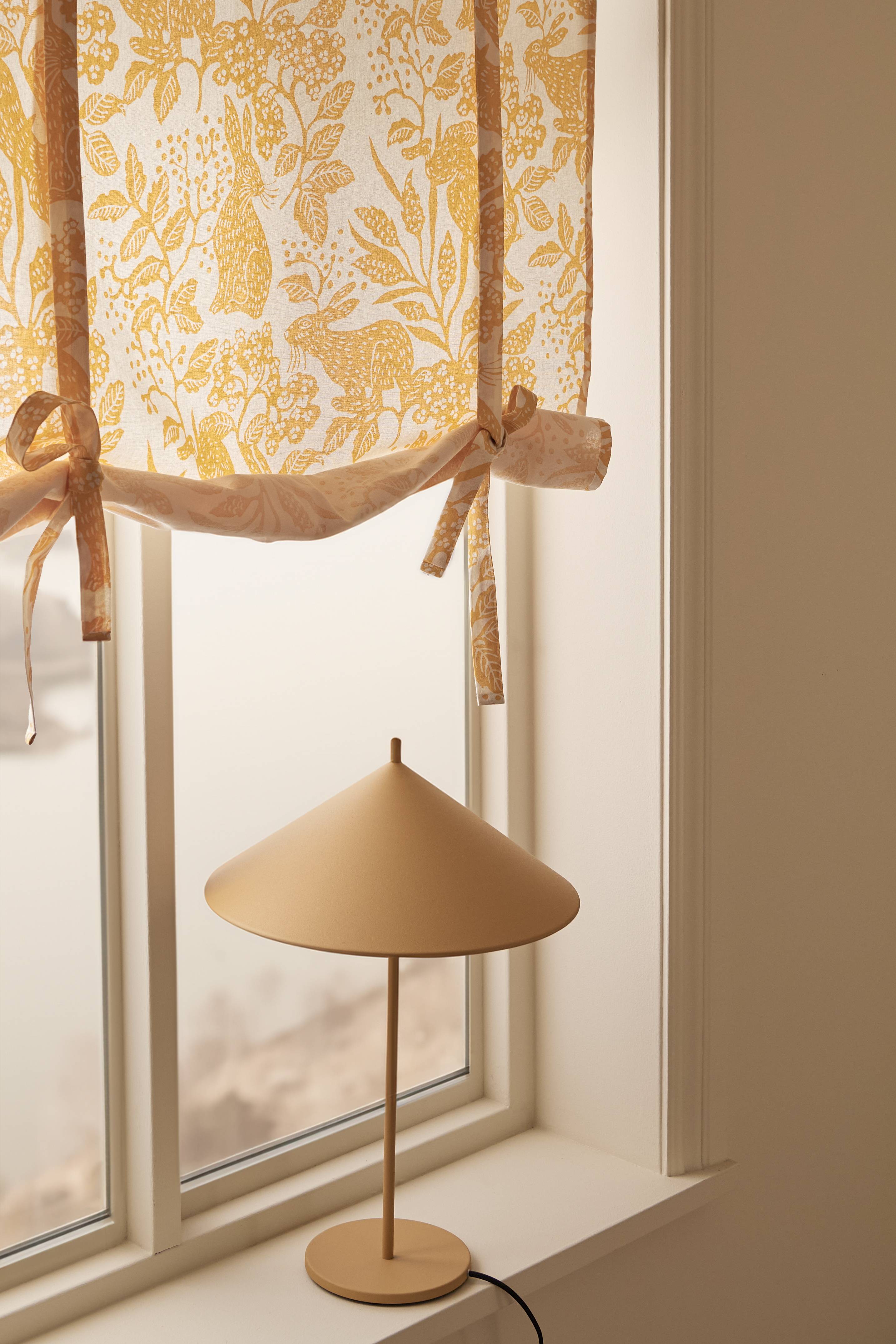 - Puuvillainen rullautuva laskosverho, jossa painettu kuvio ja solmimisnauhat