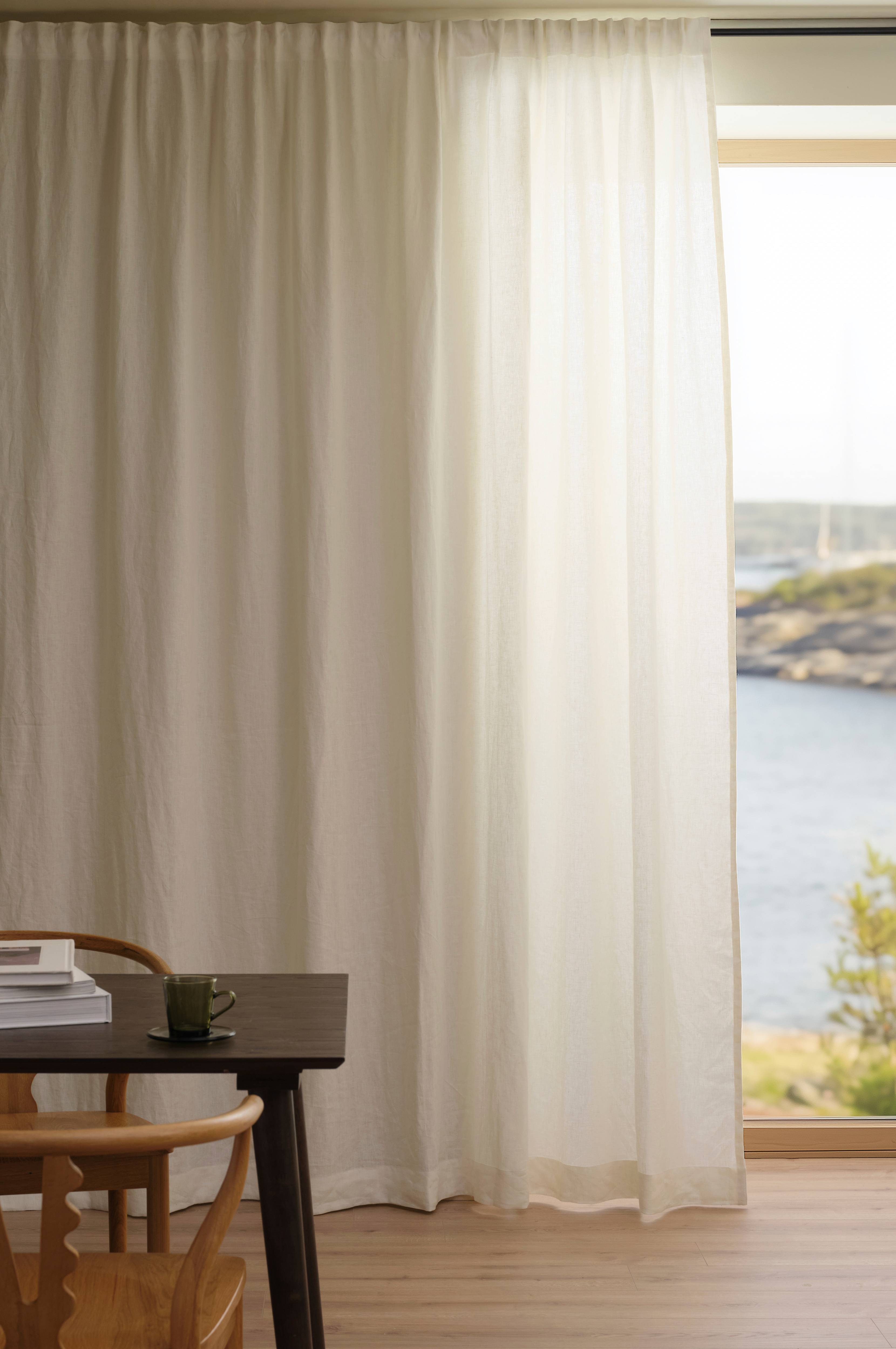 Pellava on hieno luonnonmateriaali, joka muuttuu ajan myötä pehmeämmäksi ja notkeammaksi. Vinkkinä erityisen pehmeän ja miellyttävän laskeutumisen aikaansaamiseksi on käyttää höyrystintä, kun ripustat pellavaverhot paikoilleen. Höyrystimessä yhdistyy lämpö ja höyry, ja se tekee verhoista joustavammat.