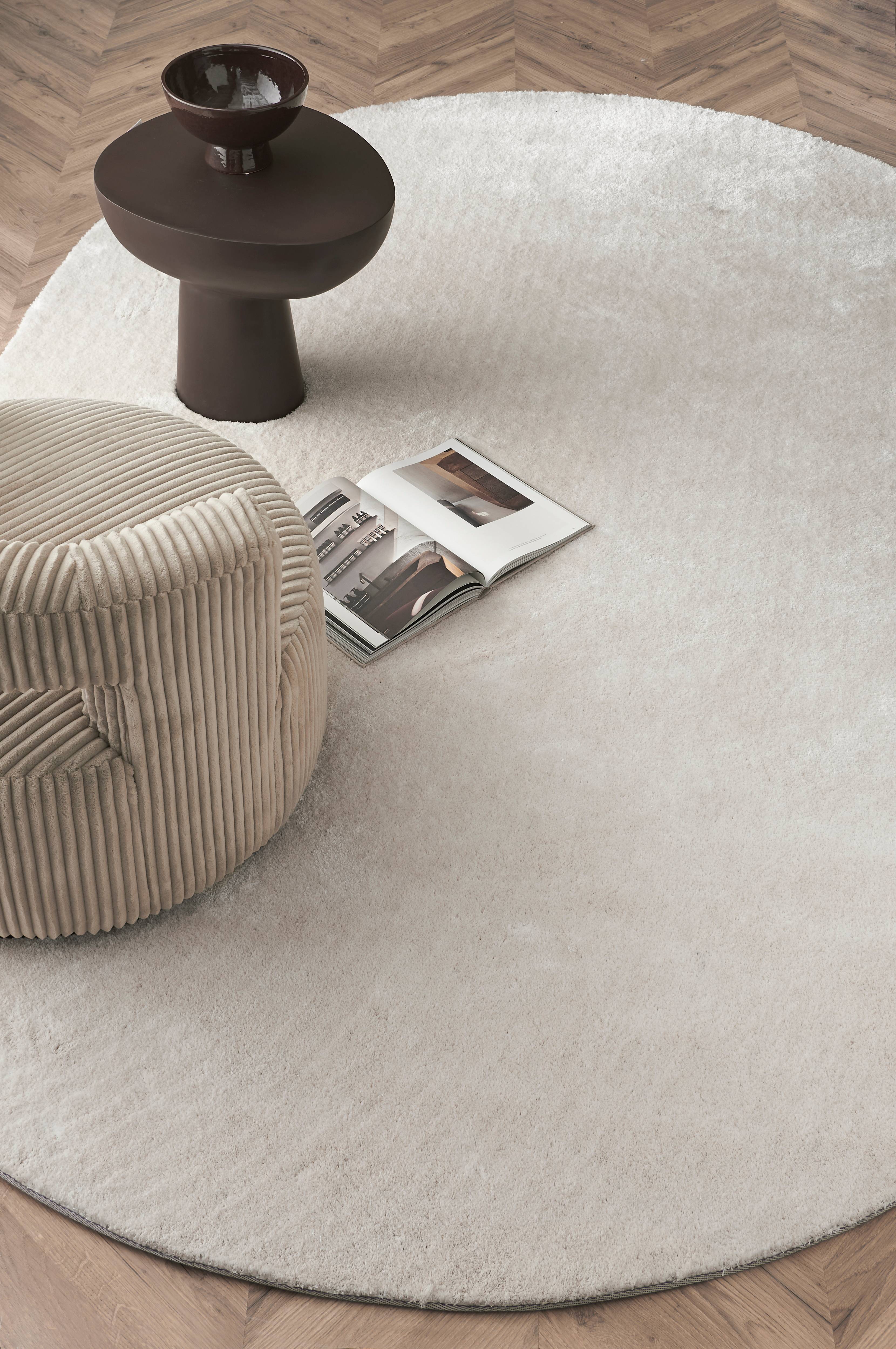 Soikea tuftattu matto pehmeää ja hohtavaa materiaalia. Paksuus 2 cm.