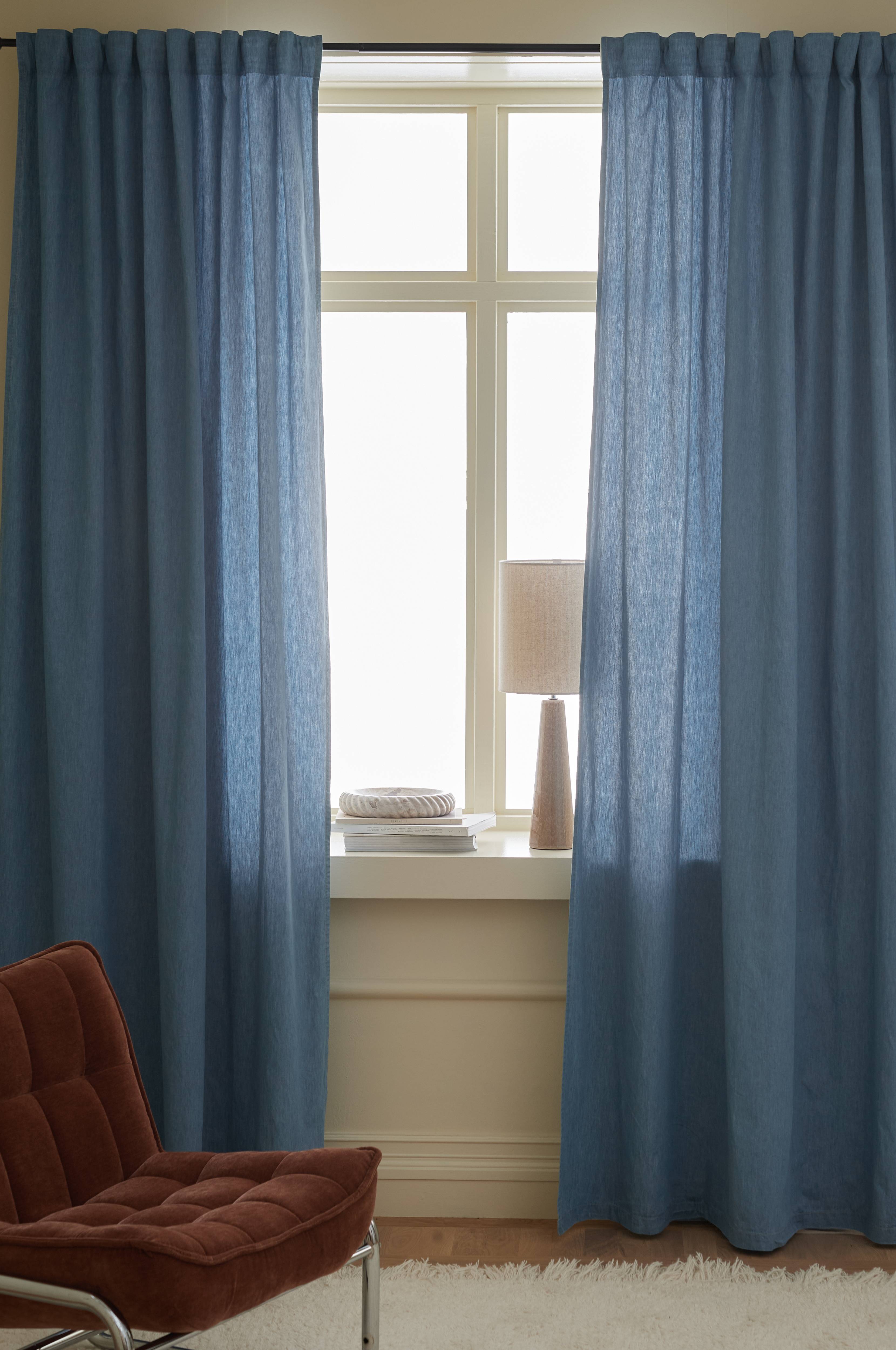 • Kaksi Monitoimiverhoa pehmeästä, pestystä denimistä