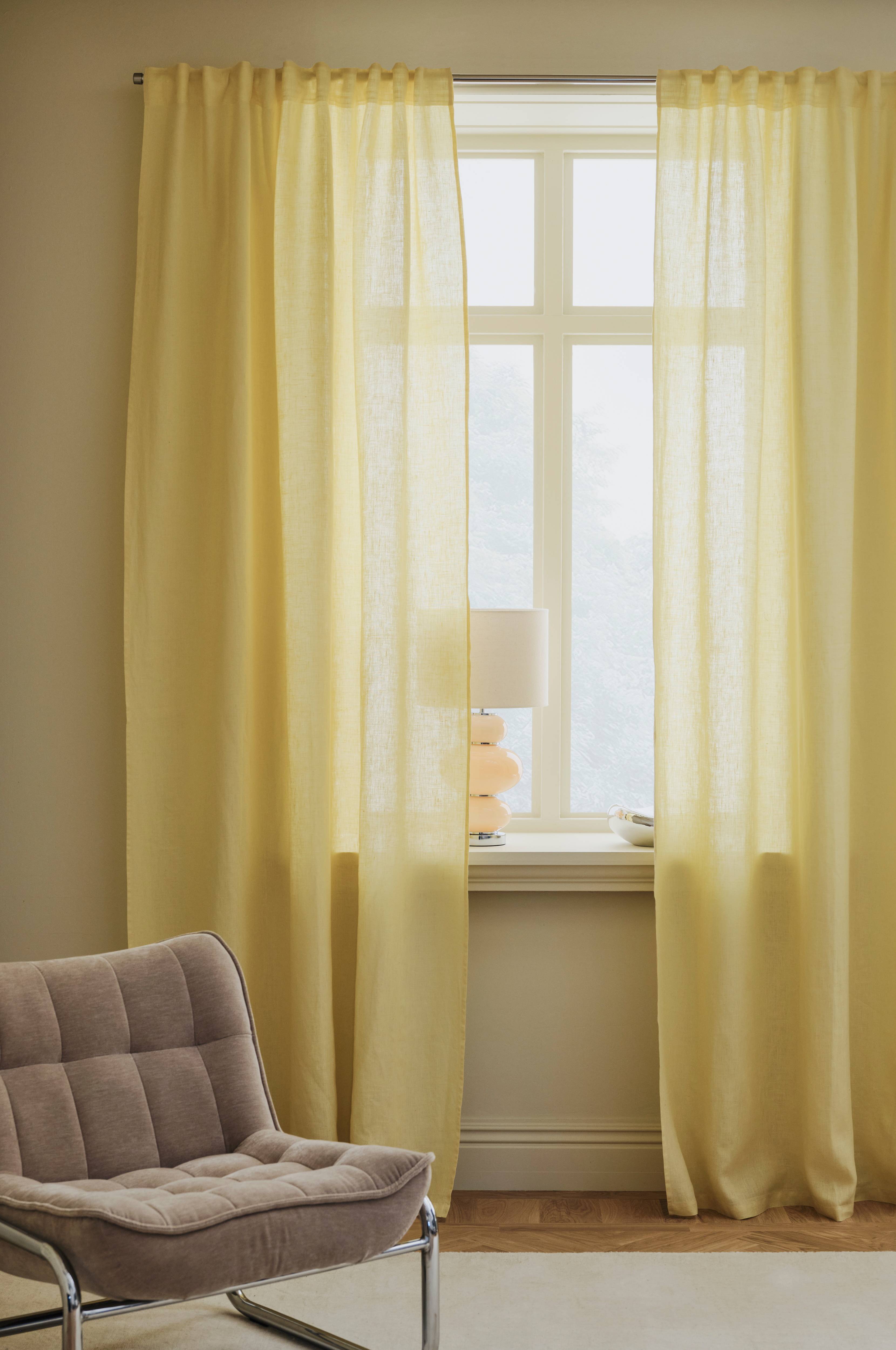 Kaksi monitoimiverhoa pestyä, eläväpintaista pellavaa. Monitoiminauhan ansiosta verhot voidaan ripustaa piilolenkkien avulla suoraan verhotankoon tai käyttää ripustamiseen renkaita, neulakoukkuja tai sormikoukkuja. Poimutusnauhan nyöreillä saat helposti tasaiset ja kauniit laskokset. Voidaan käyttää myös keräilykoukun kanssa. Leveys 135 cm. Saatavana useita pituuksia.