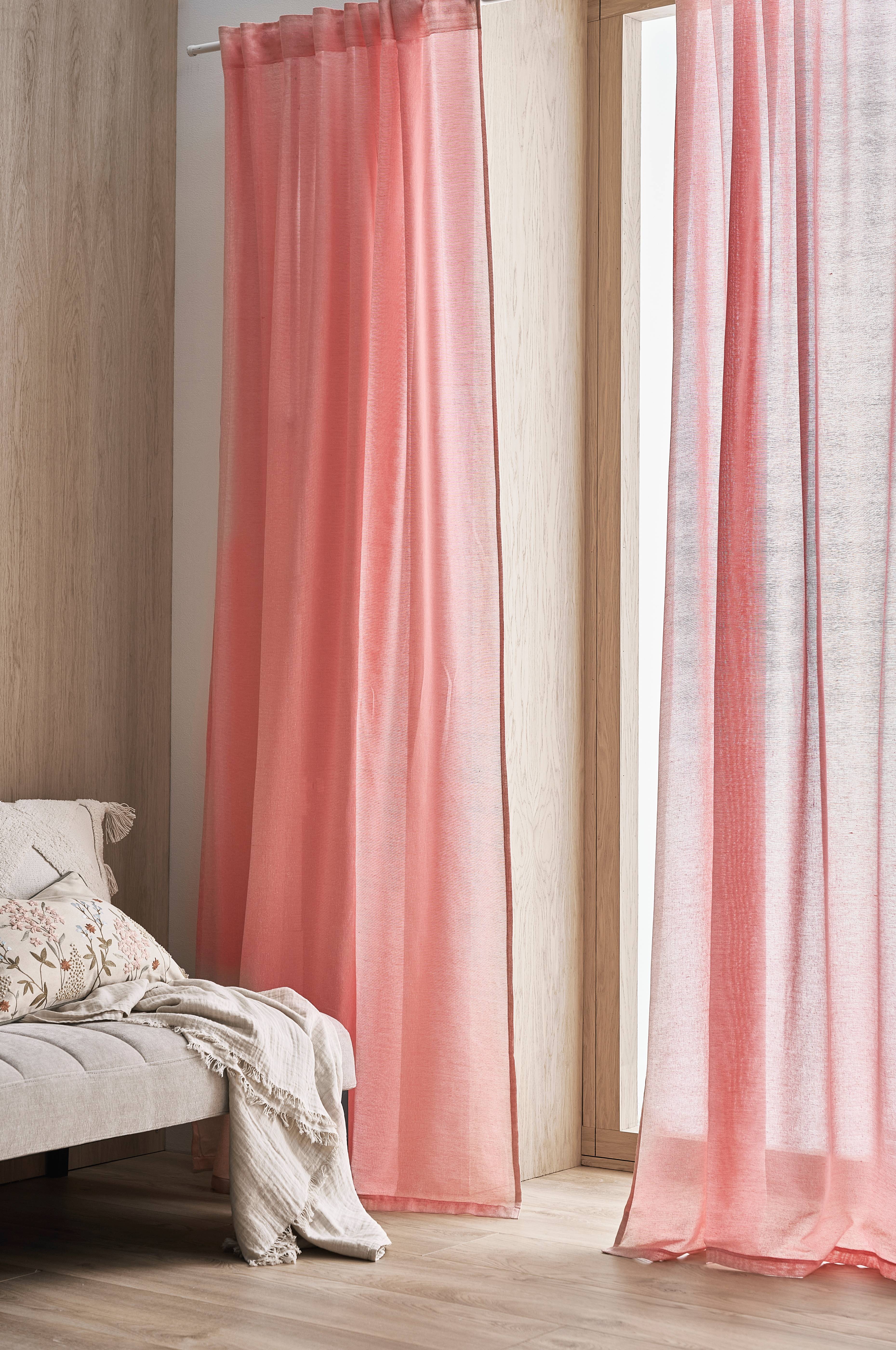 Kaksi usean nauhan pituista, harvaa kudottua, kirjavaa kangasta, joka on valmistettu kierrätetystä puuvillasta. Moninauhojen avulla voit ripustaa verhot joko suoraan verhotankoon tai käyttää renkaita ja neulakoukkuja (ei sormikoukkuja). Laskoksissa olevien nyörien avulla voit helposti luoda tasaisia, hienoja laskoksia. Leveys 145 cm. Saatavana useita eri pituuksia.