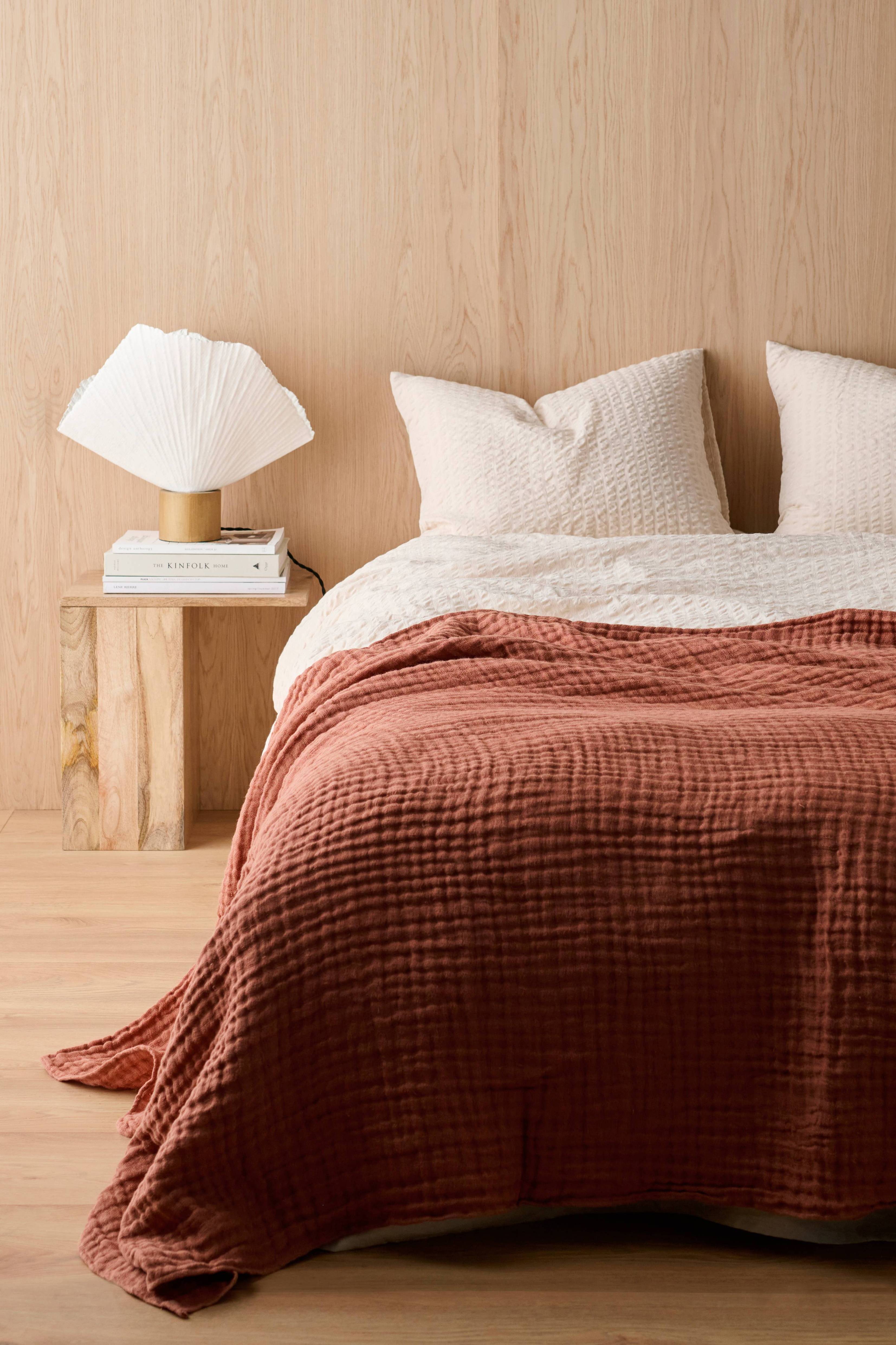 Päiväpeite pestyä, rennon tyylistä ja kevyttä ranskalaista pellavaa. Kolminkertaista kangasta, jossa tyylikäs struktuuripinta.