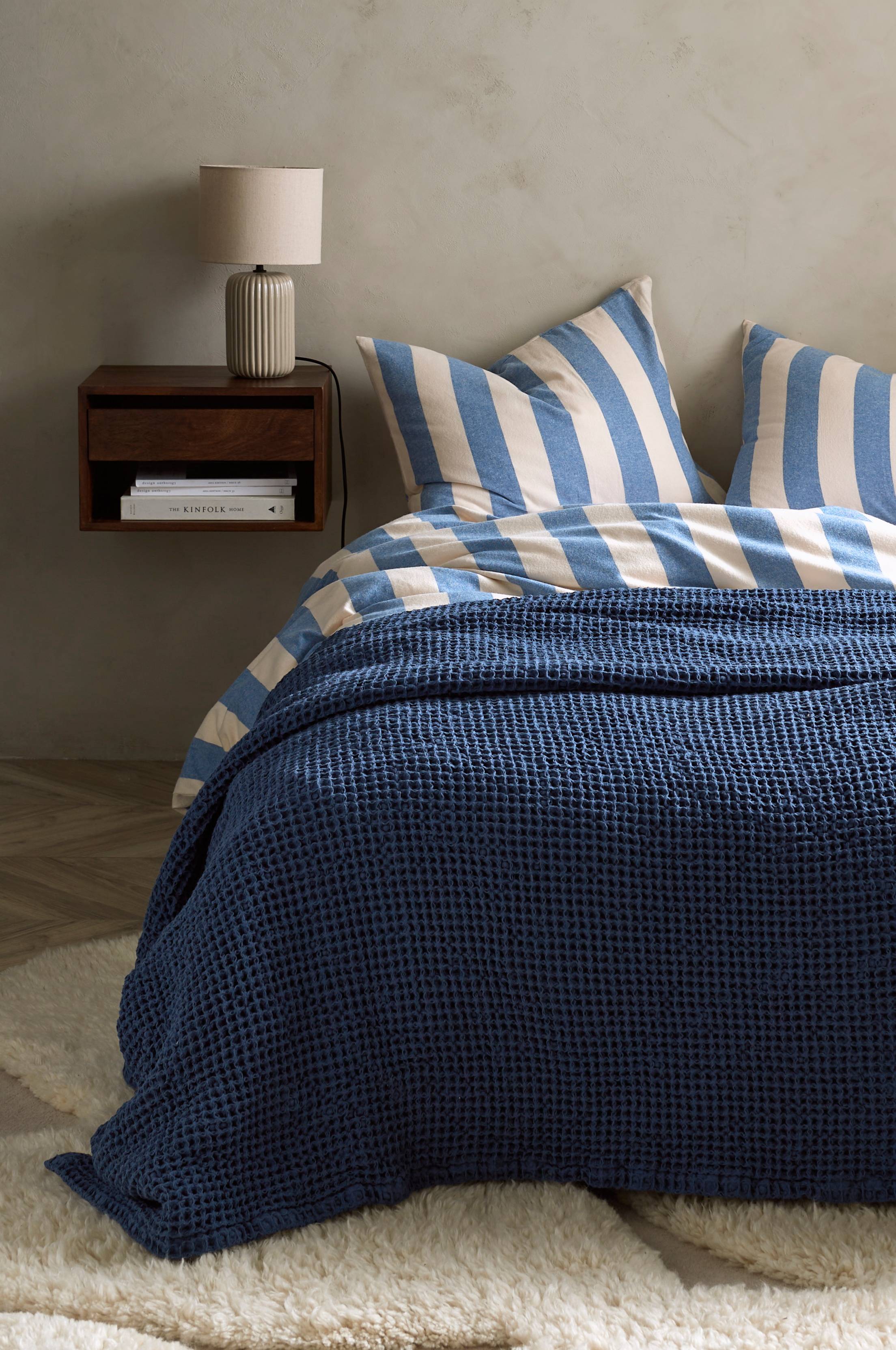 Pehmeä ja mukava, sopivan painava päiväpeitto ja antaa hieman rustiikkisen tunteen.