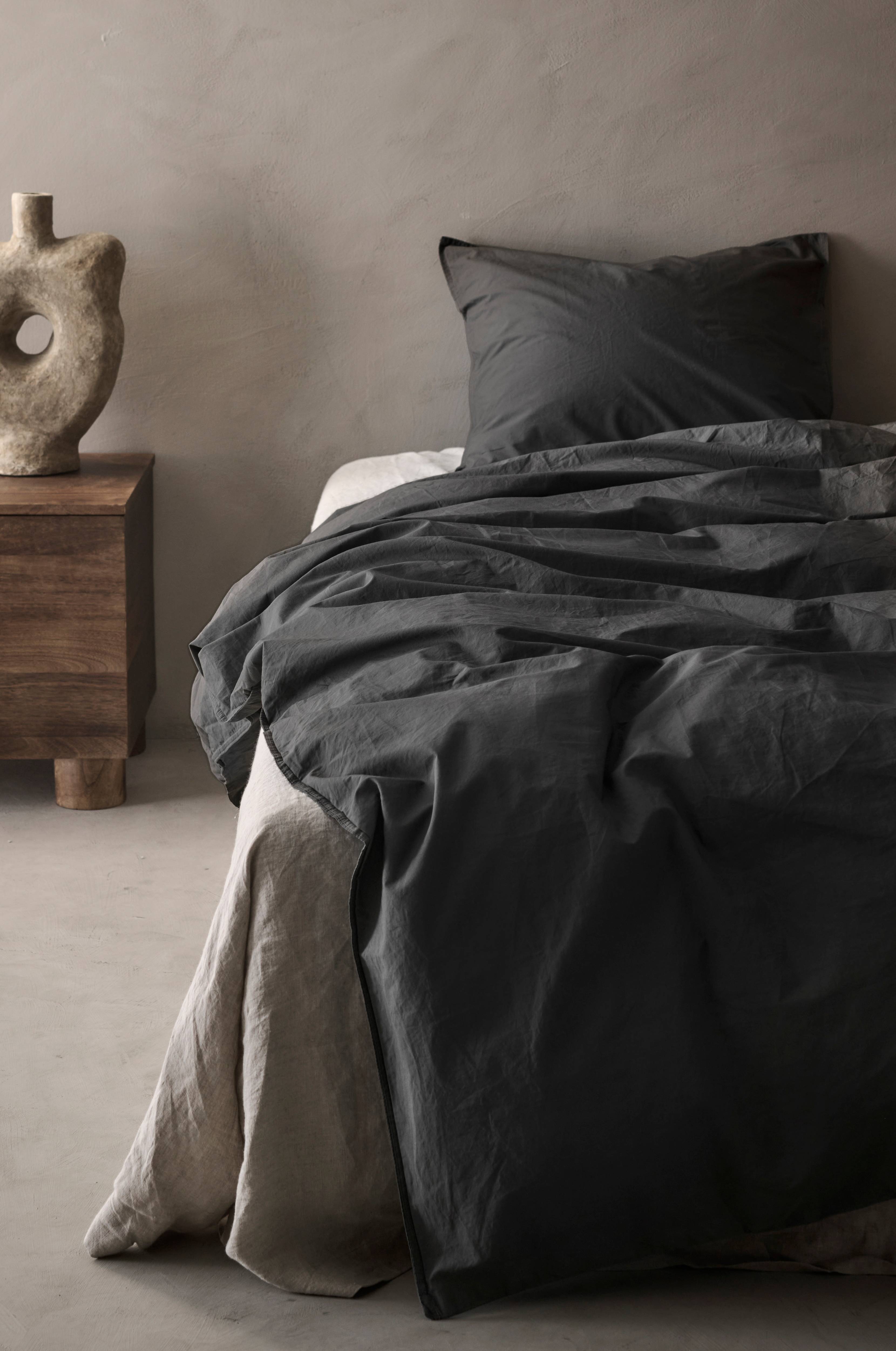 2- tai 3-osainen pussilakanasetti pestyä puuvillaperkaalia. Kaksinkertaiset farkkusaumat ympäriinsä ja muoviset painonapit pussilakanan alareunassa. Langantiheys 200 tc. Ei kädenaukkoja. Setti toimitetaan samasta materiaalista valmistetussa kangaskassissa.