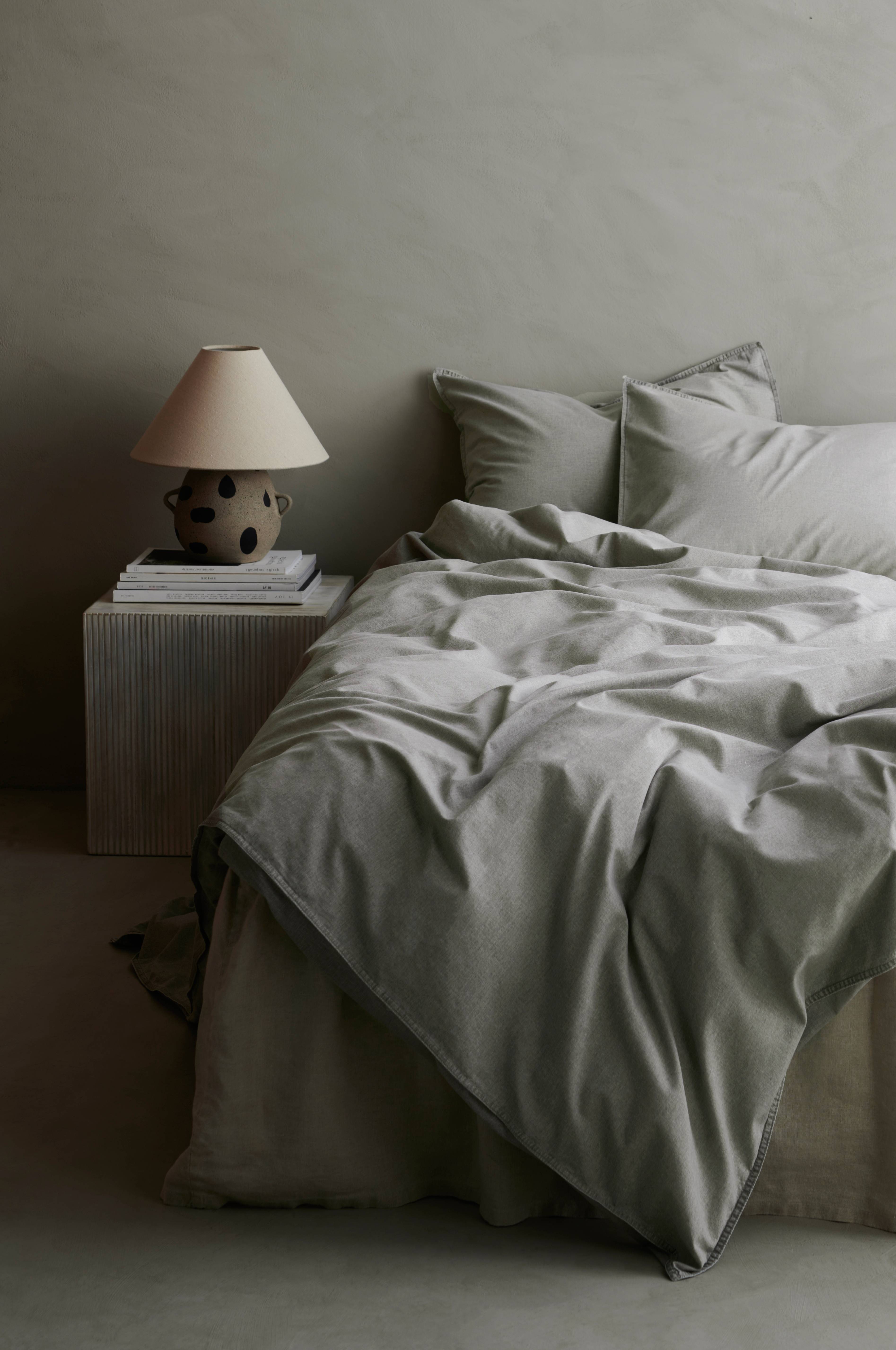 Pussilakanasetti vintagepestyä ekologista puuvillaa. Langantiheys 144 TC. Kaksinkertaiset farkkusaumat ympäriinsä. Painonapit pussilakanan alareunassa. Ei kädenaukkoja. Toimitetaan samasta materiaalista valmistetussa nyörillisessä kangaspussissa. Pussilakana 150x210 cm ja tyynyliina 50x60 cm.