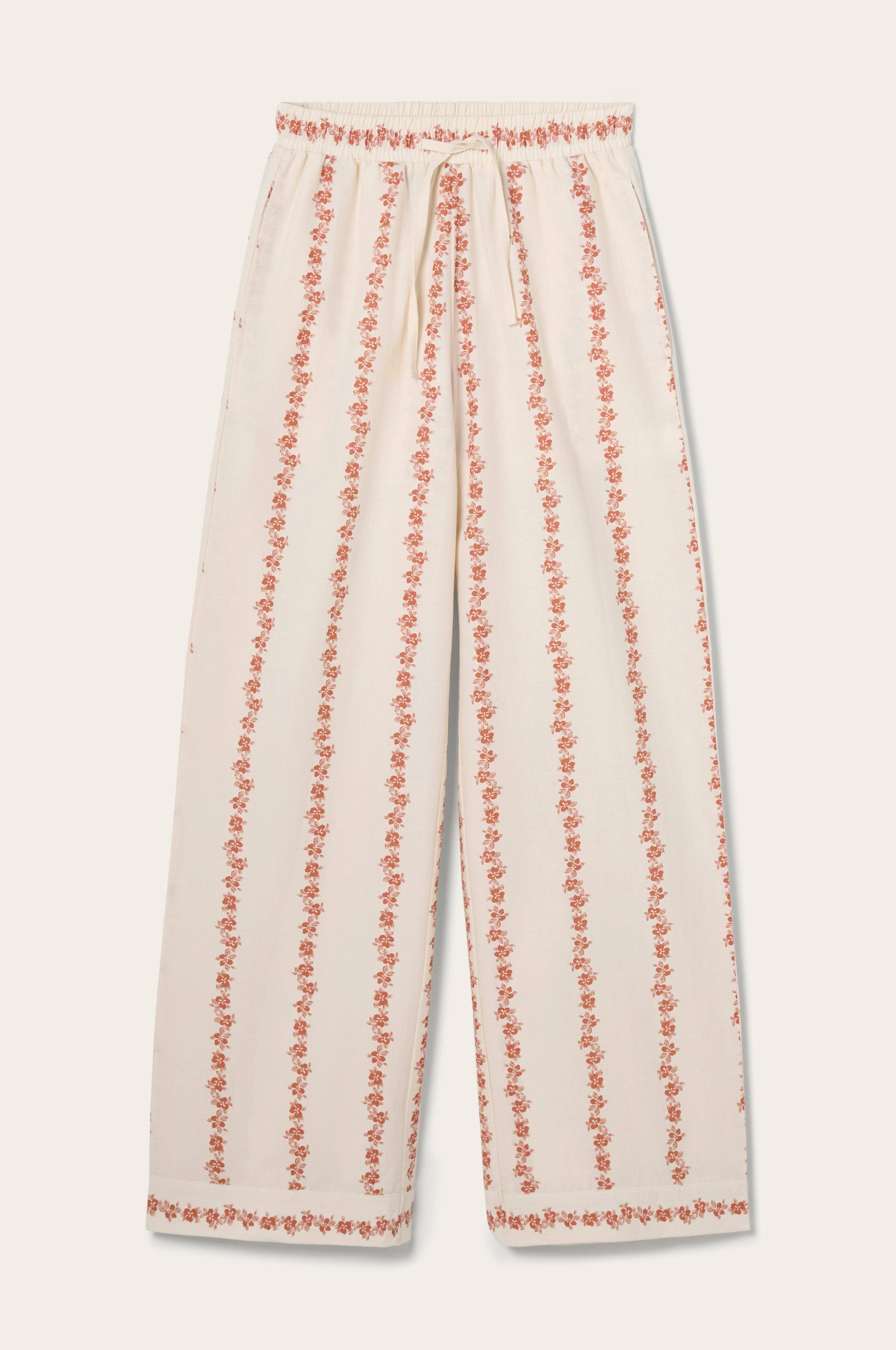 • Pehmeät pyjamahousut pesty puuvillasta• Painettu kuviointi• Joustava vyötärö kiristysnyörillä• Leveät jalat