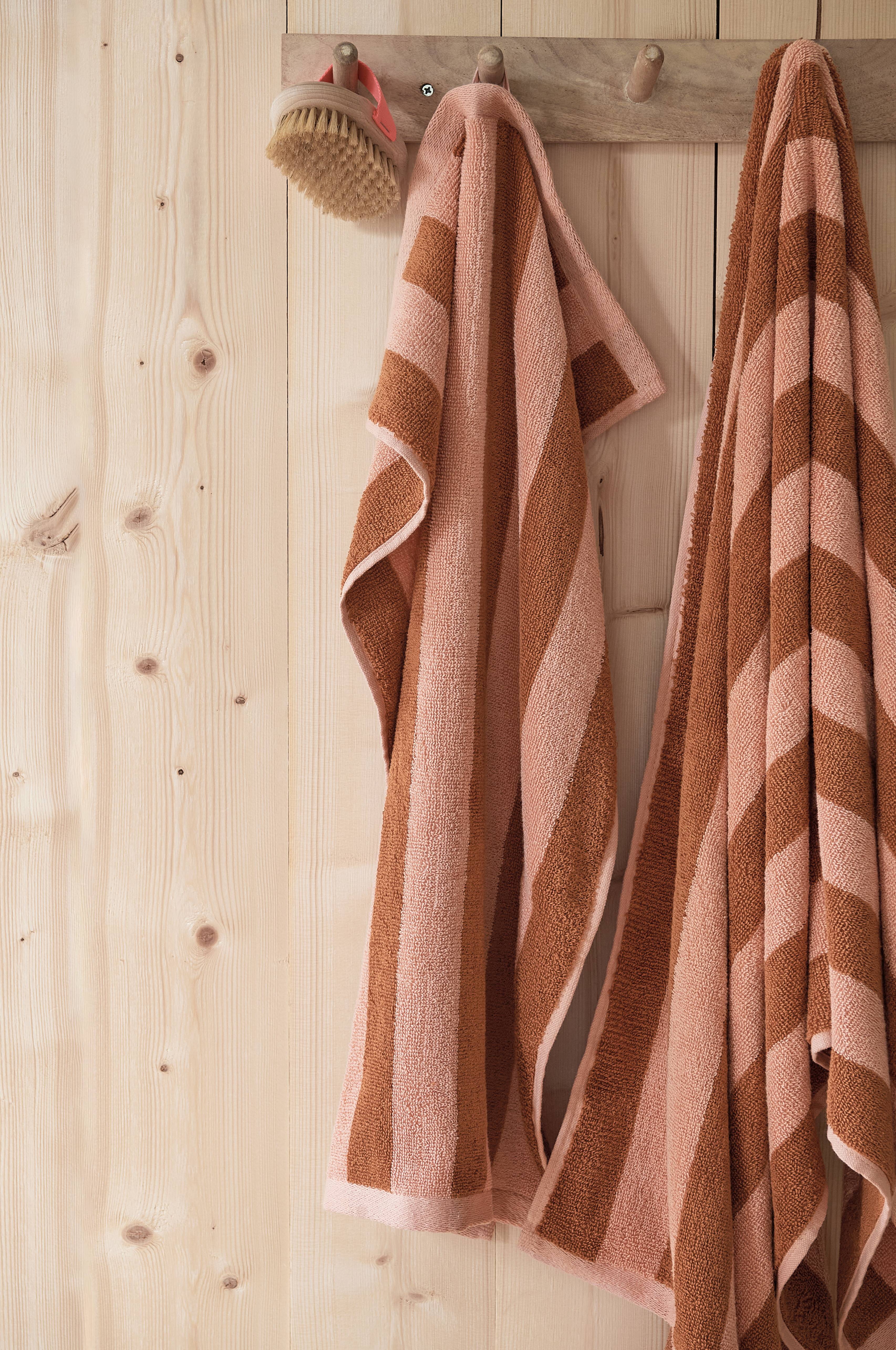 Pyyhe pehmeää ja miellyttävää puuvillafroteeta, jossa lankavärjätyt raidat. Koko 50x70 cm.