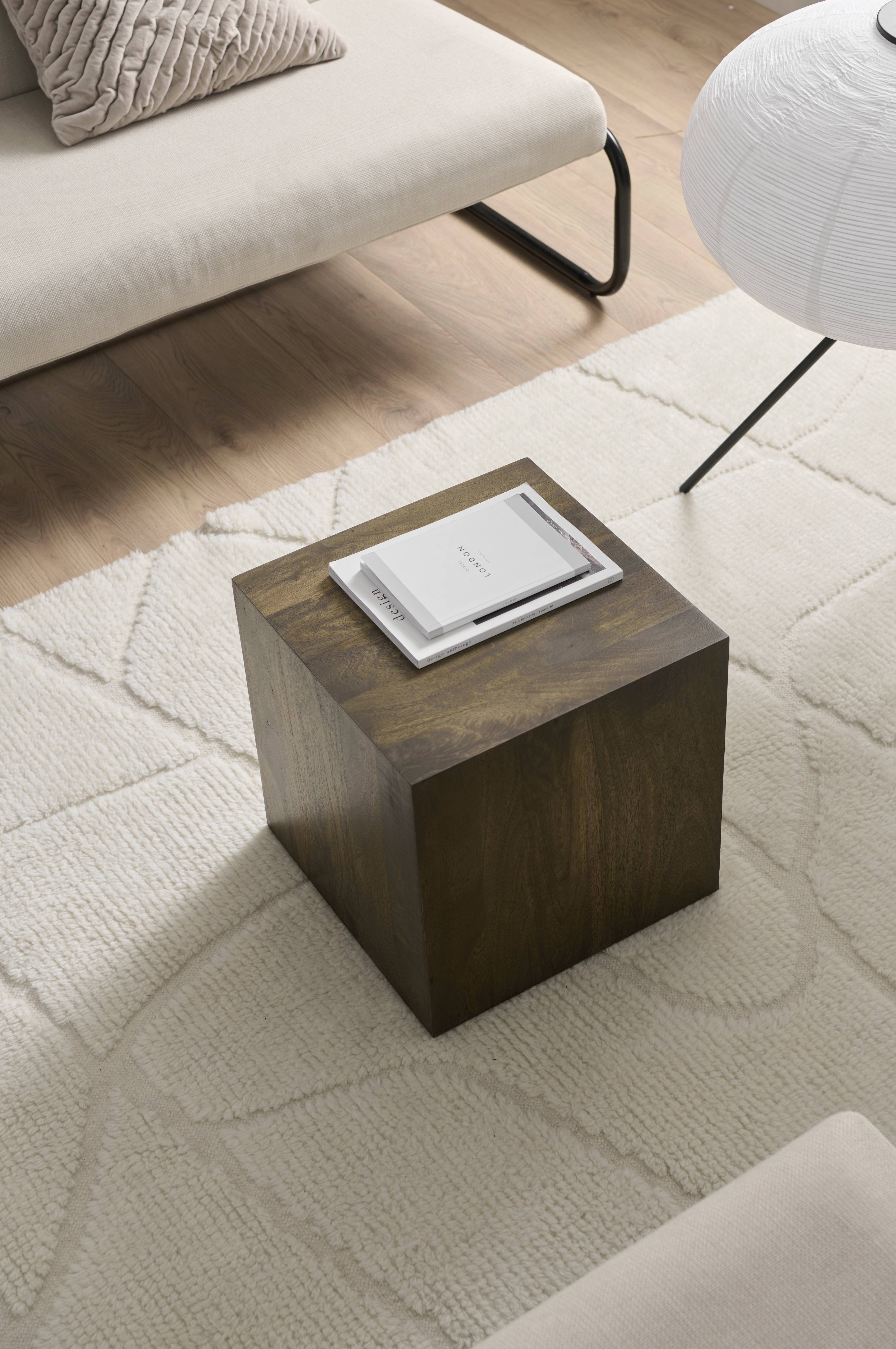 Sivupöytä/yöpöytä mangopuuta ja MDF-levyä. Toimitetaan koottuna.