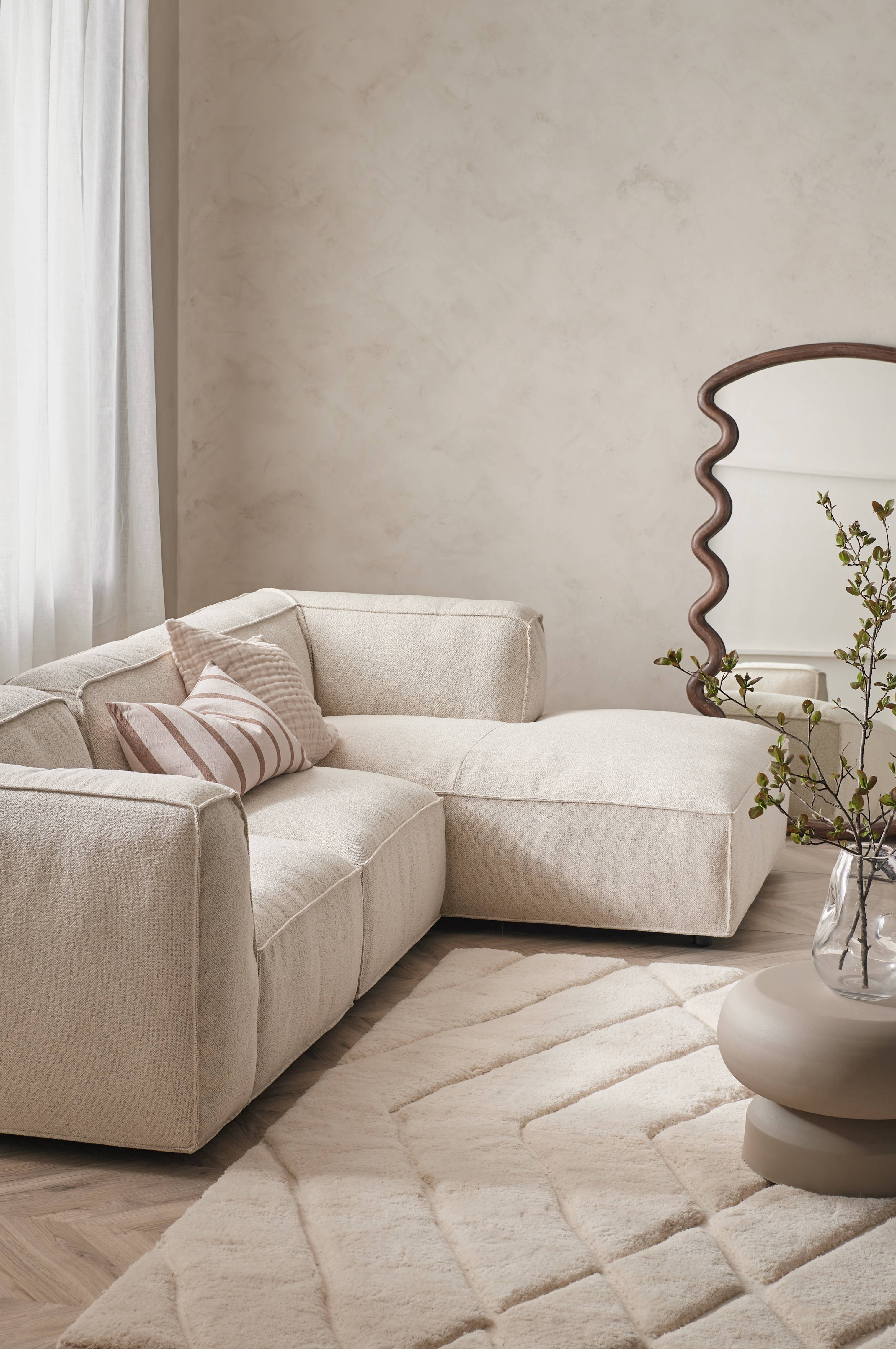 3:n istuttava sohva, jossa bukleeverhoilu. Divaaniosa oikealla (ei voi asentaa vasemmalle).