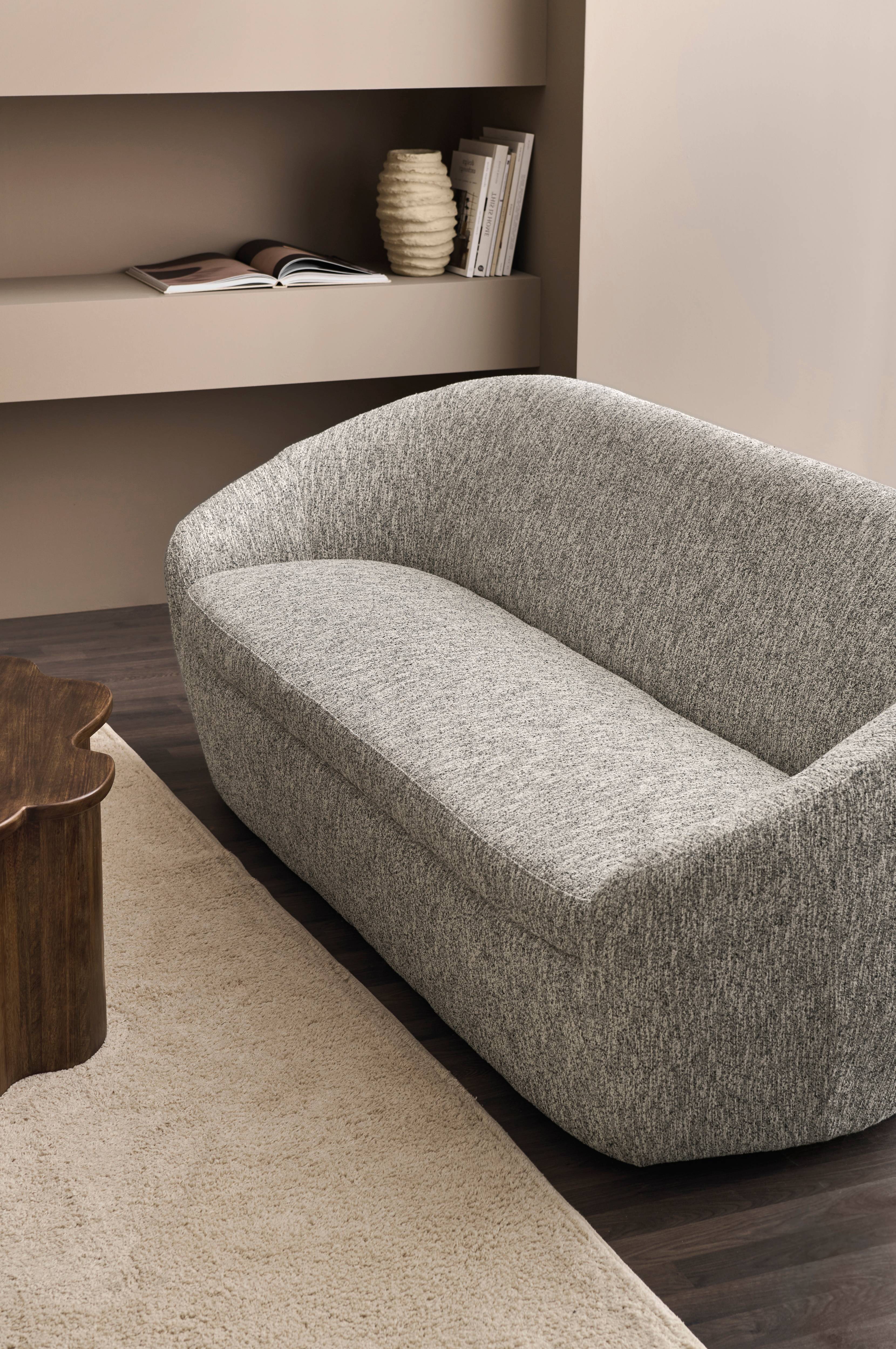 Moderni ja pyöreälinjainen 3:n istuttava sohva.