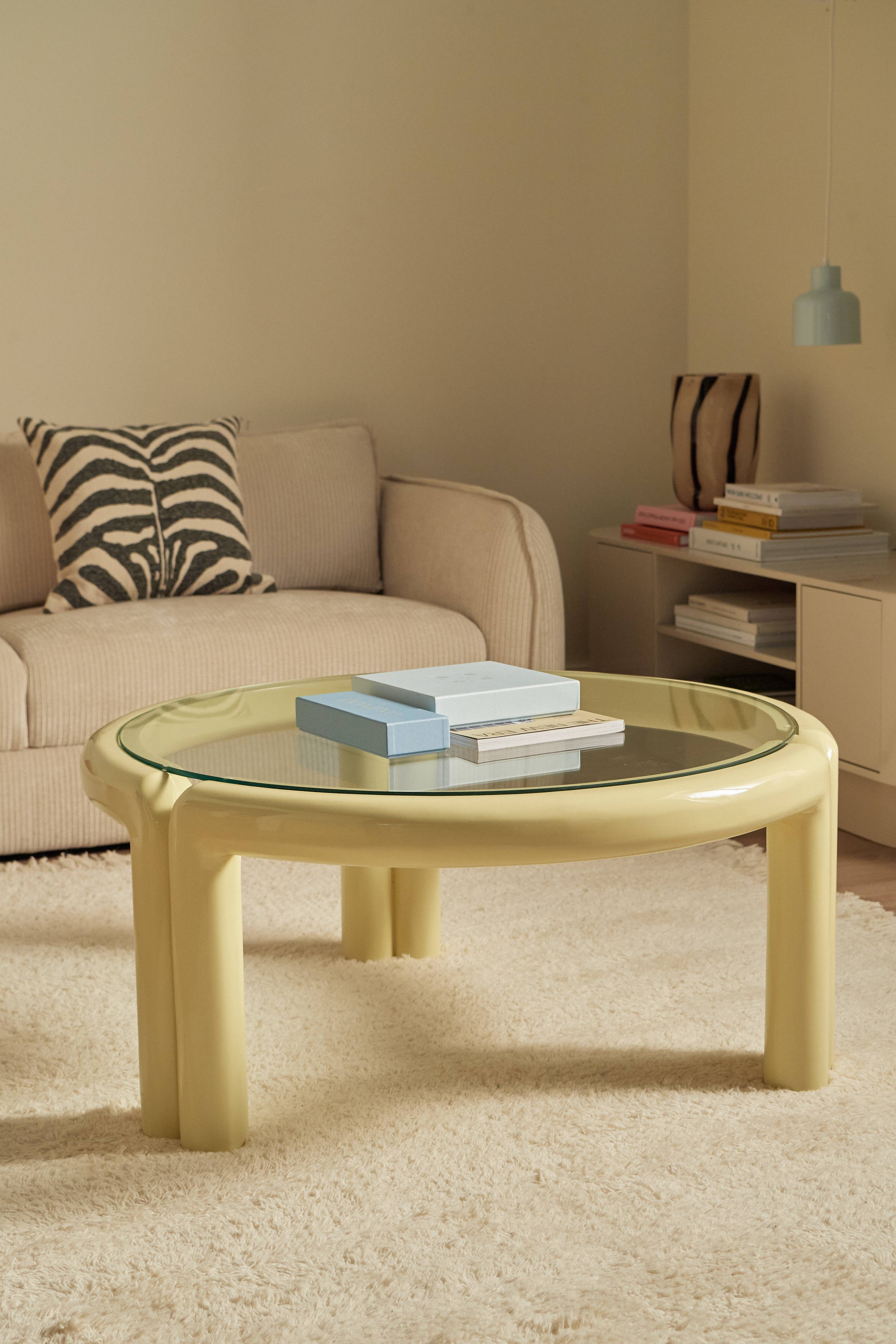 • Pyöreä sohvapöytä kiiltävästä, lakatusta MDF-levystä