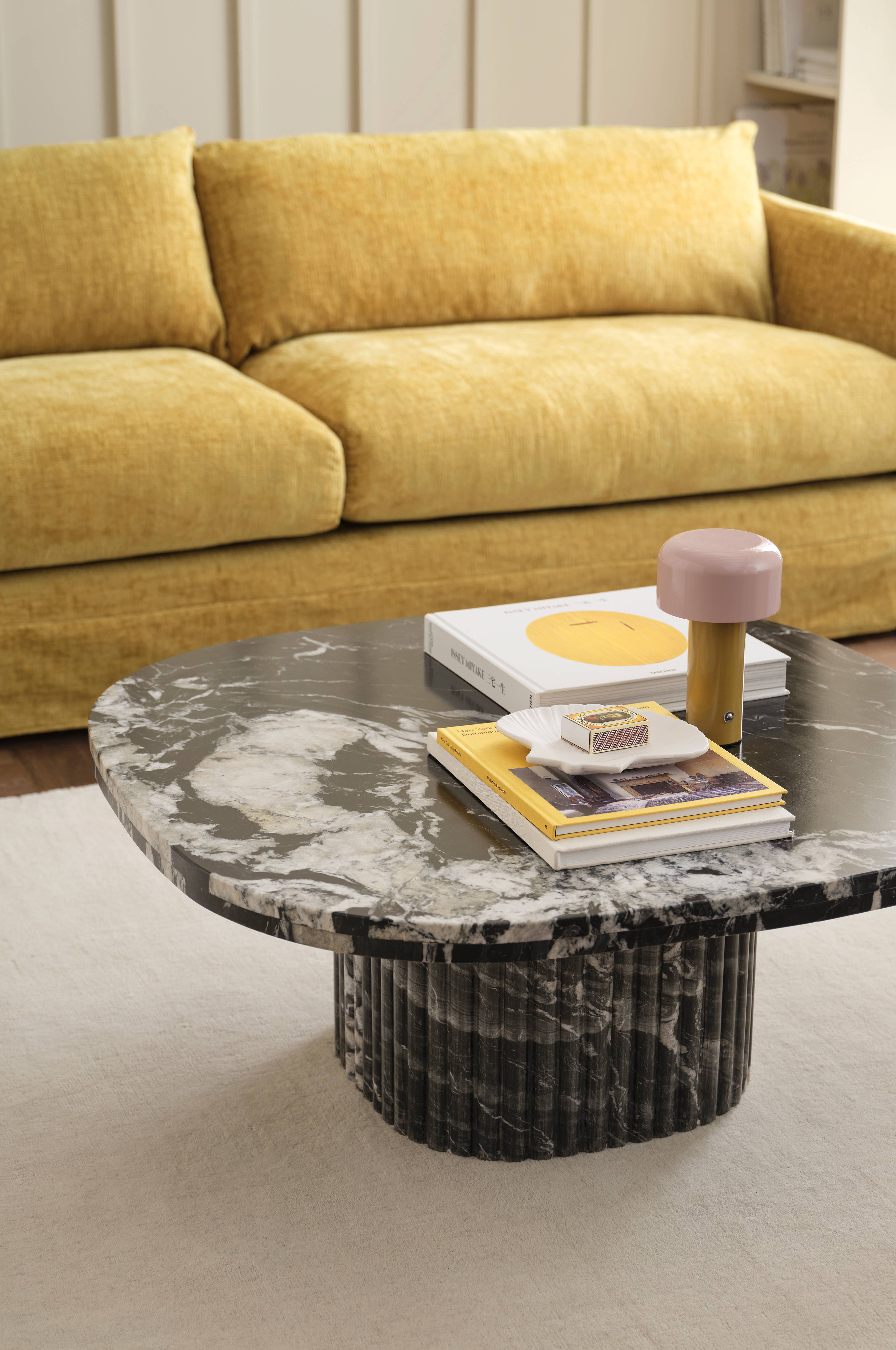 • Sohvapöytä marmorista• Kulmikas pöytälevy pyöristetyillä reunoilla• Aallotettu muotoilu pohjassa