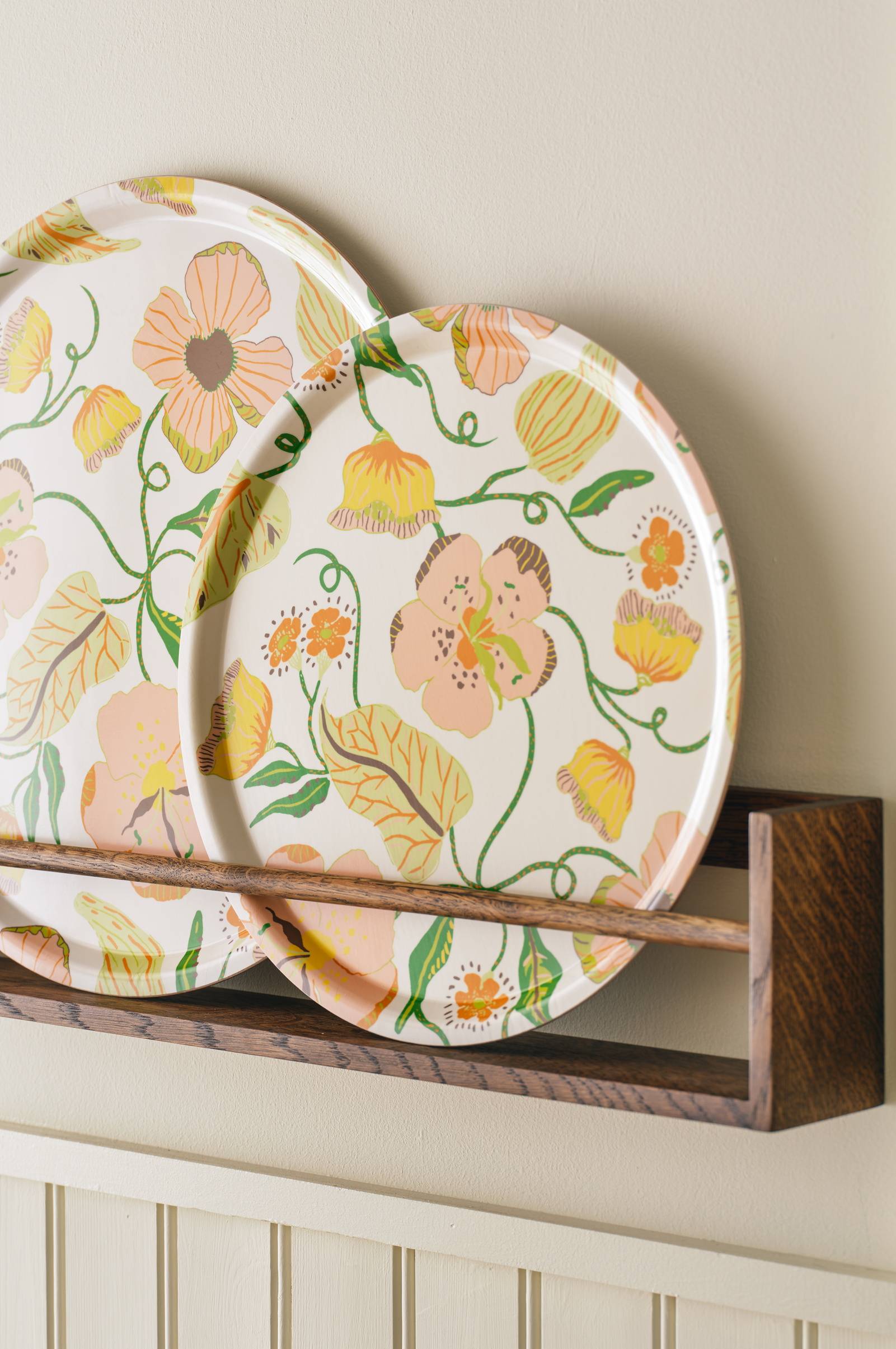 • Pyöreä, käsintehty tarjotin koivusta• Laminoitu, kestävä pinta painetulla kukkakuviolla• Astianpesukoneen kestävä