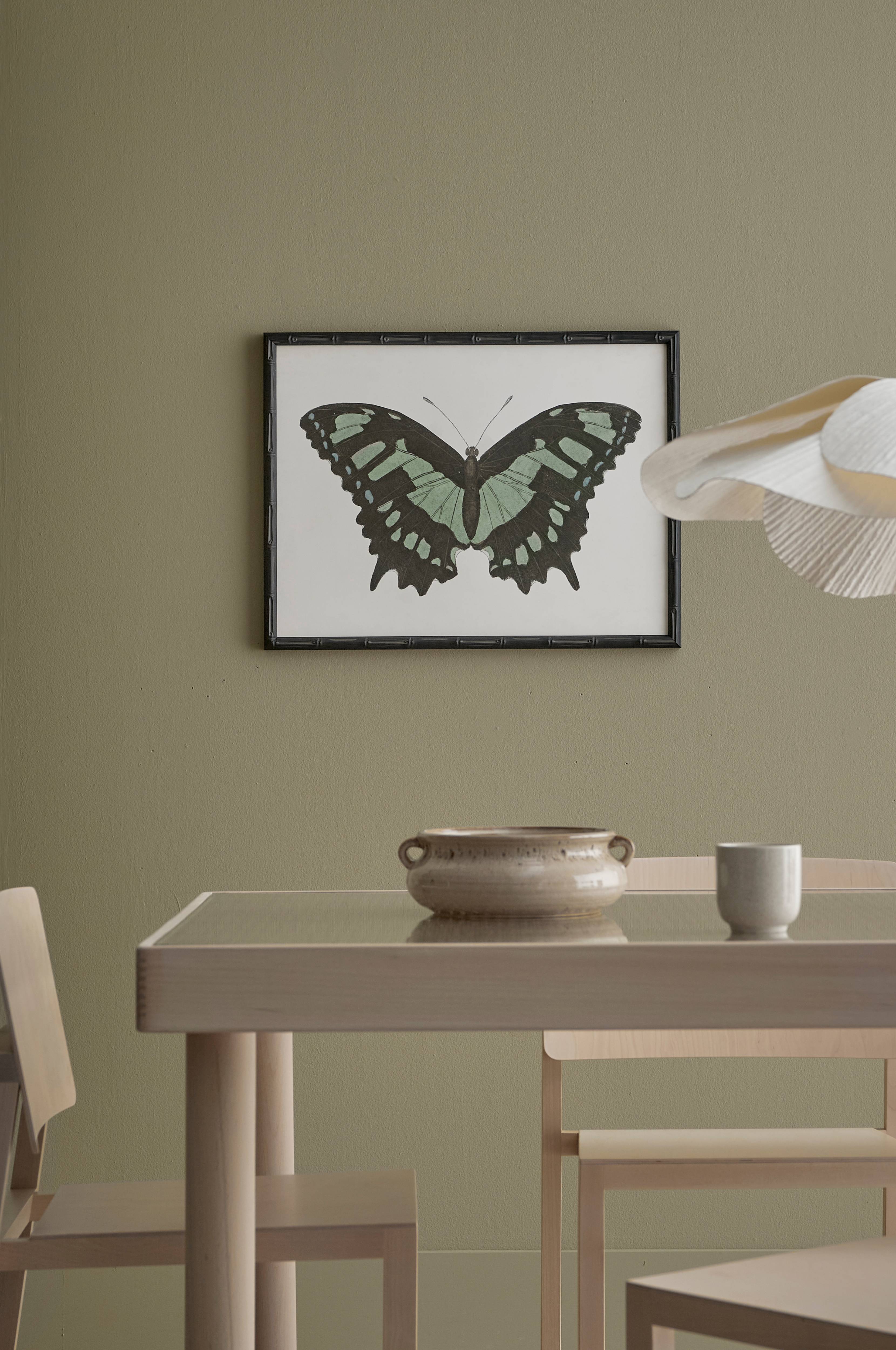 Taulu, jossa painettu kuvio ja lasi. Kehys puujäljitelmää. Lasin mitat: 60x45 cm. Kokonaismitat kehyksen kanssa: 62,5x47,5 cm.