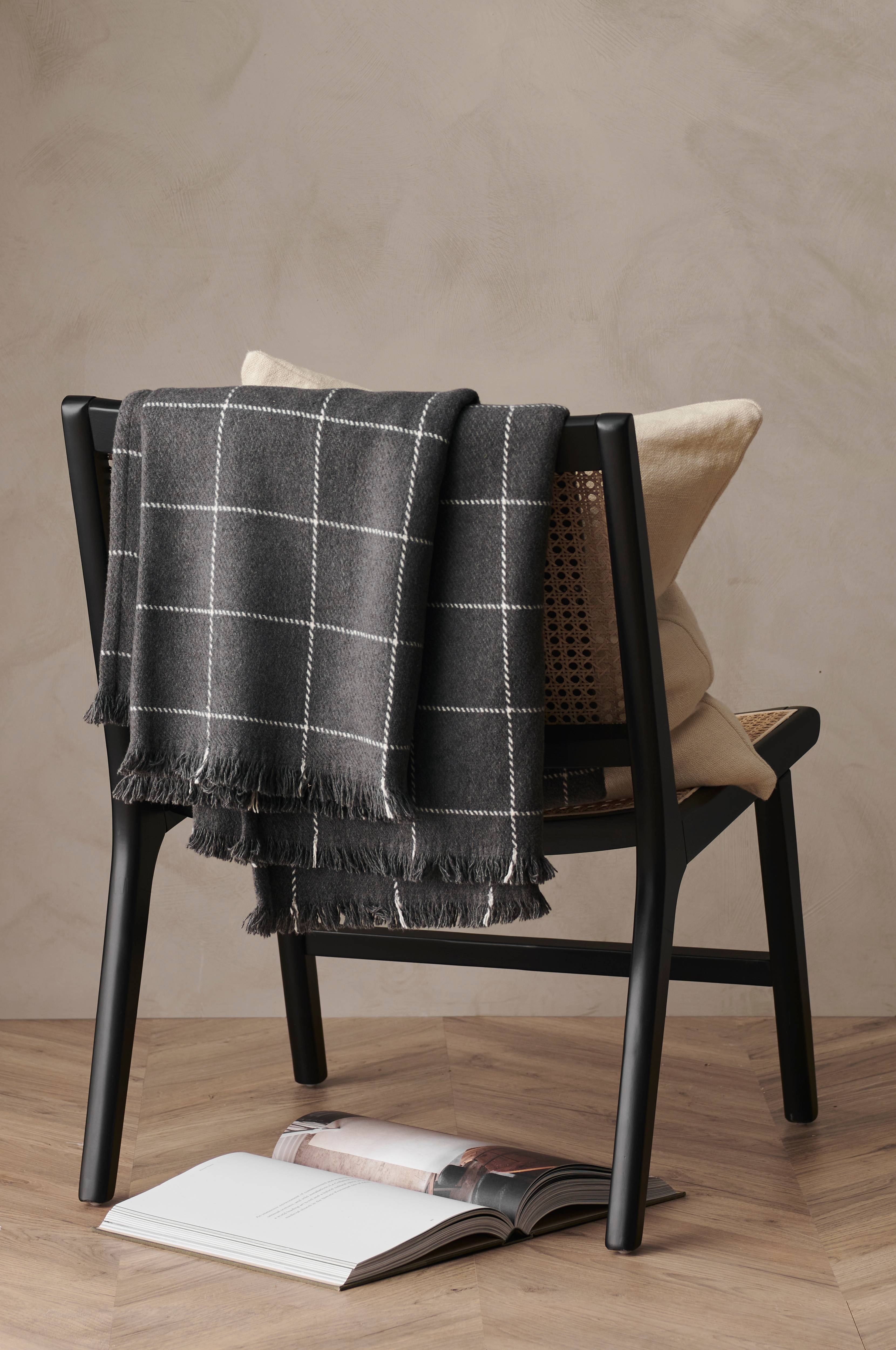 Torkkupeitto pehmeäksi pestyä materiaalia, jossa lankavärjätyt ruudut. Lyhyet hapsut kahdella sivulla. Koko 130 x 170 cm + 3 cm:n hapsut.