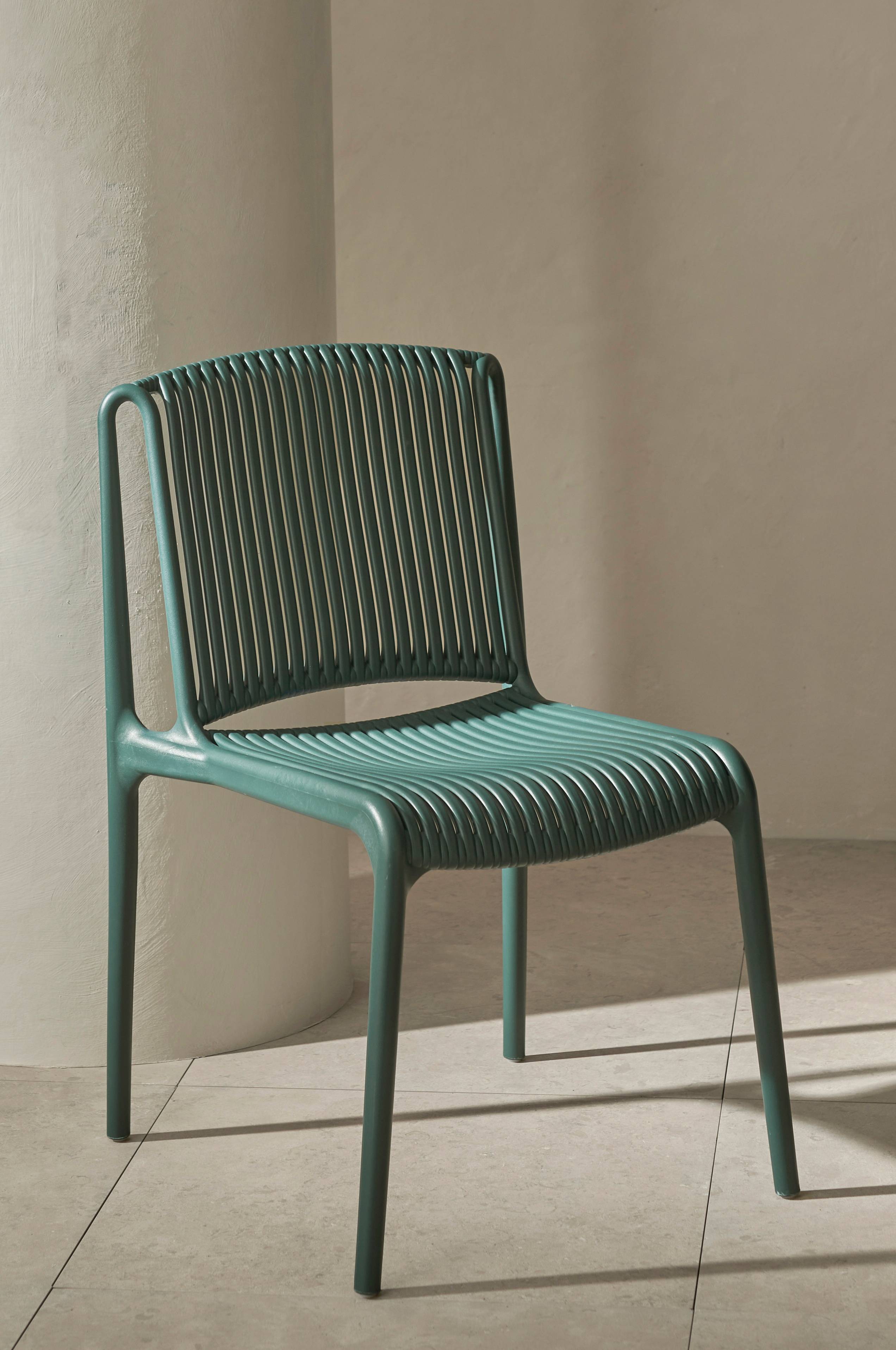 Kokonaan polyuretaanista valmistettu tuoli. Sopii ulkokäyttöön. Pinottava. Enimmäiskuormitus 150 kg. Myydään kahden kappaleen pakkauksessa.