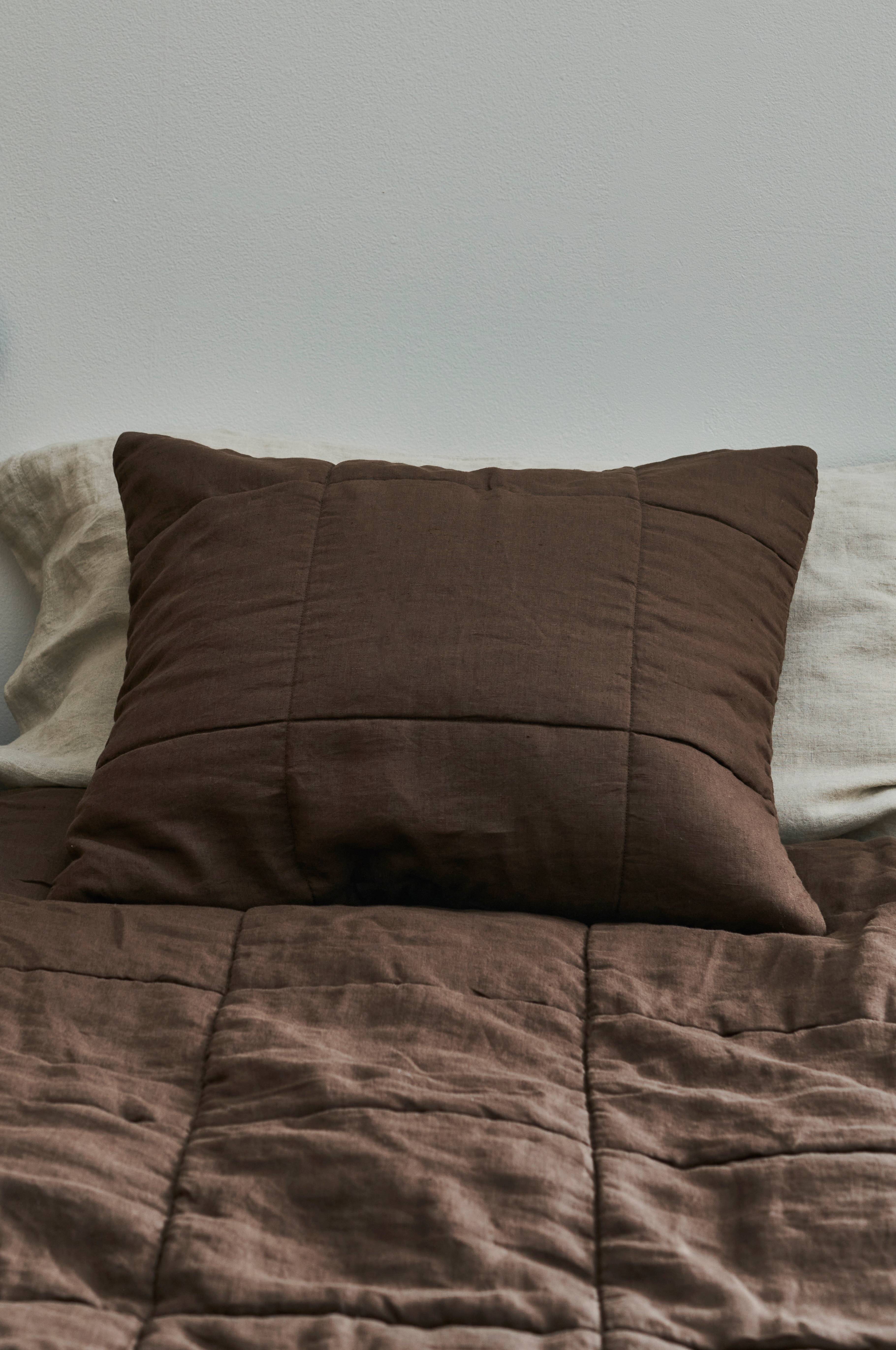 Kevyt ruututikattu tyynynpäällinen, jonka etupuoli pestyä pellavaa. Taustapuoli puuvillaa. Vetoketju. Koko 50 x 60 cm.