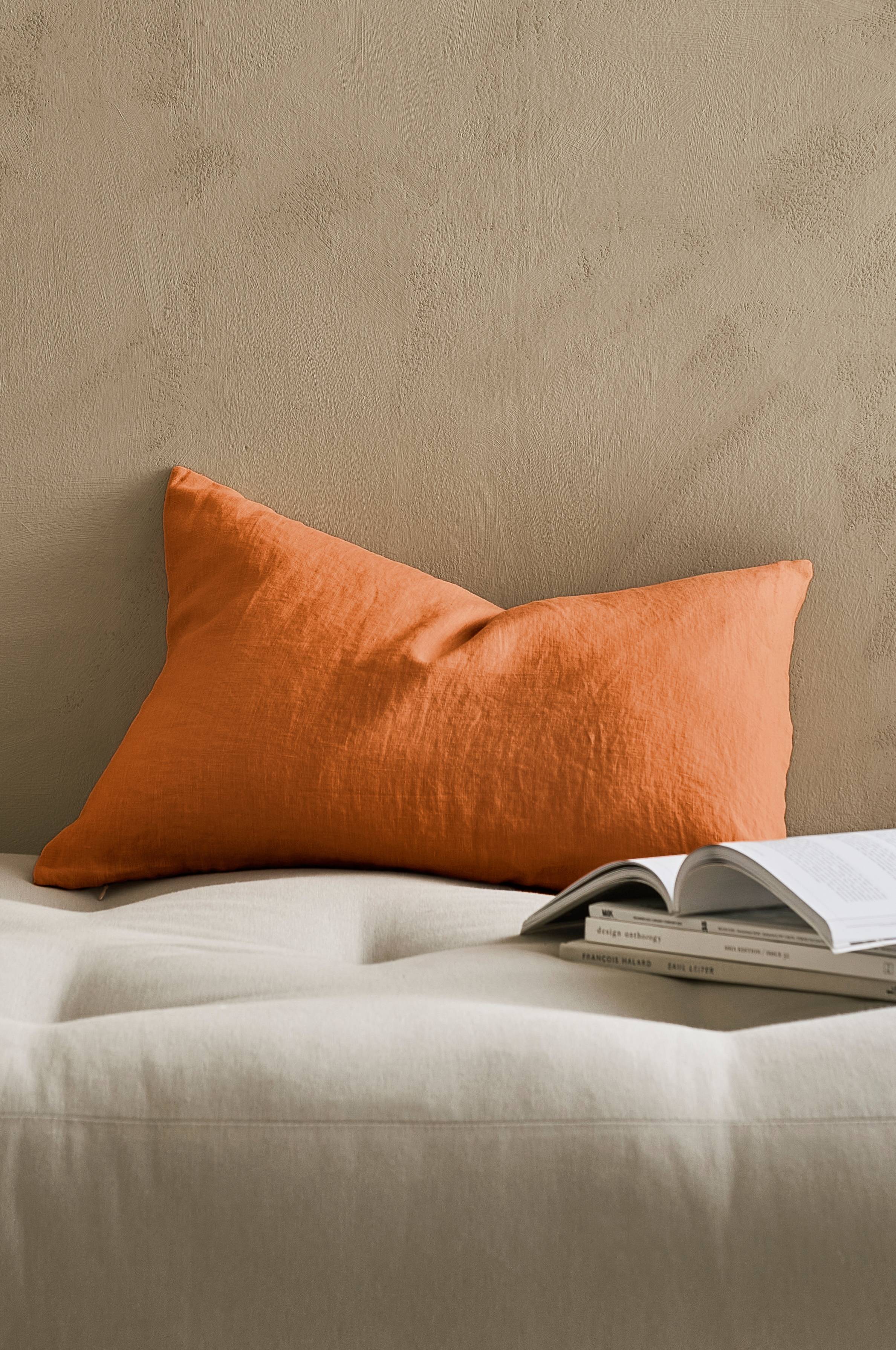 Tyynynpäällinen pehmeää pestyä ranskalaista pellavaa. Vetoketju alareunassa. Koko 40x60 cm.