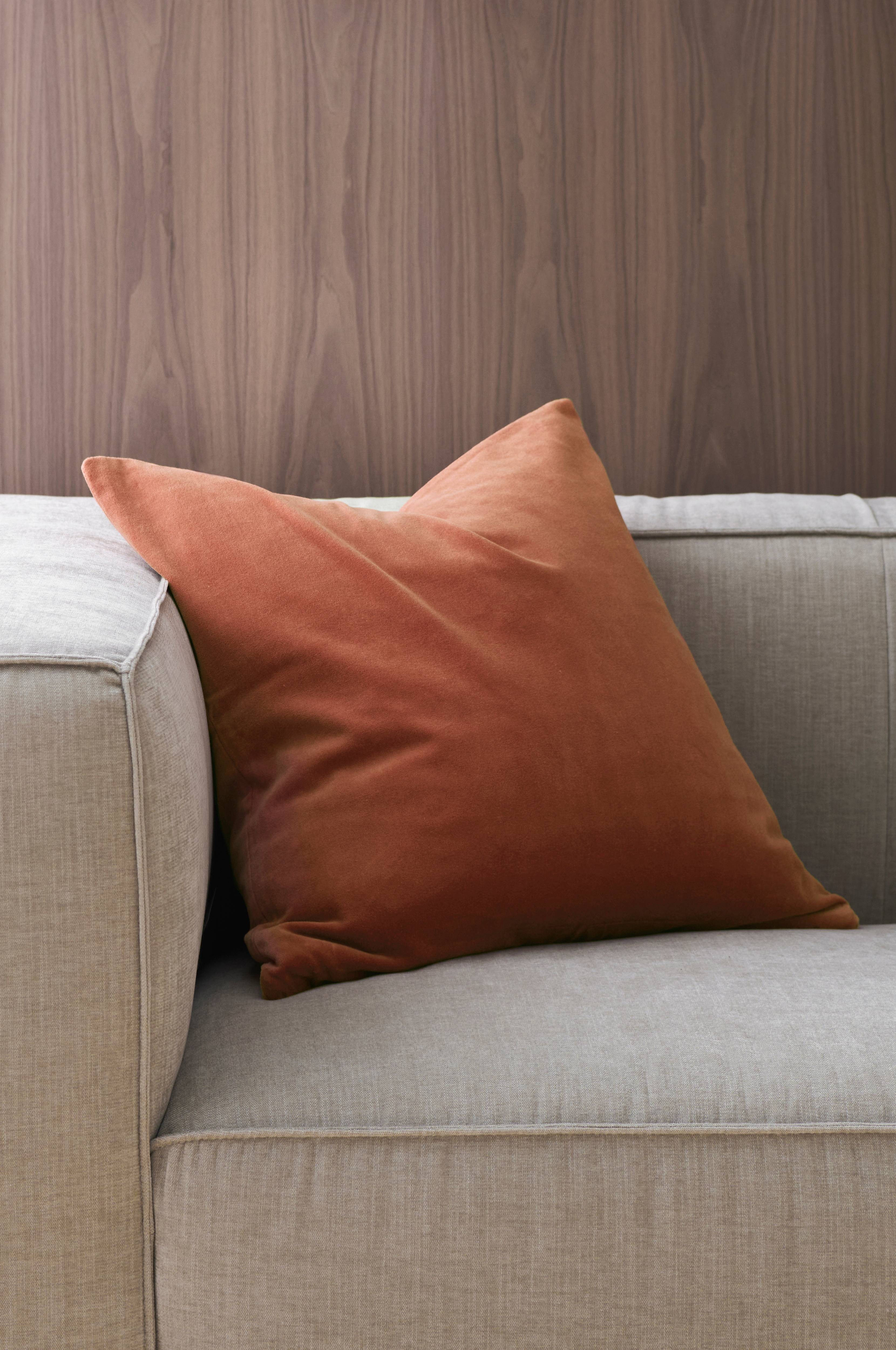 Yksivärinen tyynynpäällinen puuvillasamettia. Vetoketju alareunassa. Koko 50 x 50 cm.