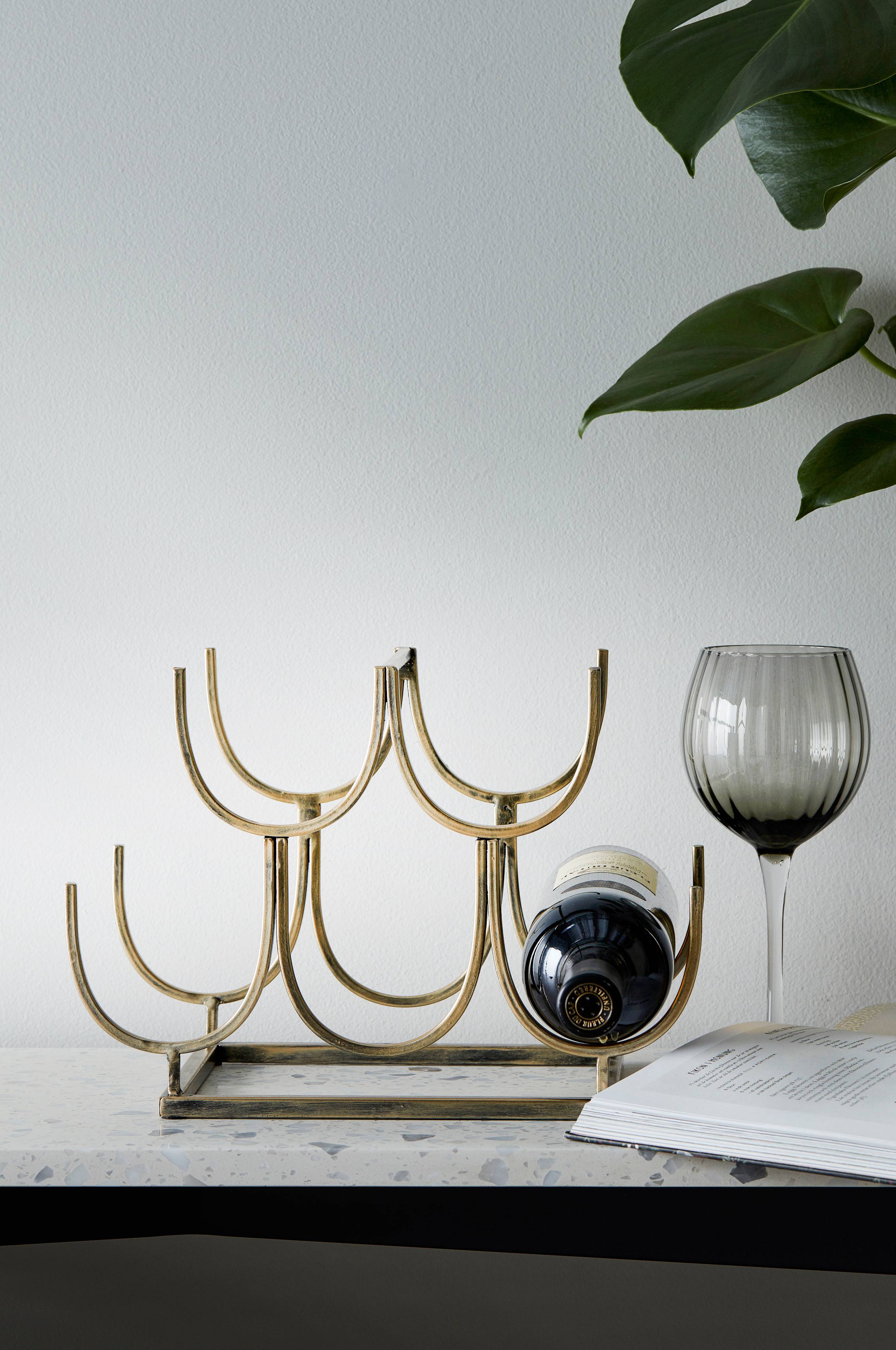 Klassinen rautainen viinipulloteline viidelle pullolle. Ylhäällä olevan kahvan avulla telinettä on helppo siirtää. Pituus 30,5 cm, leveys 20 cm, korkeus 26 cm.
