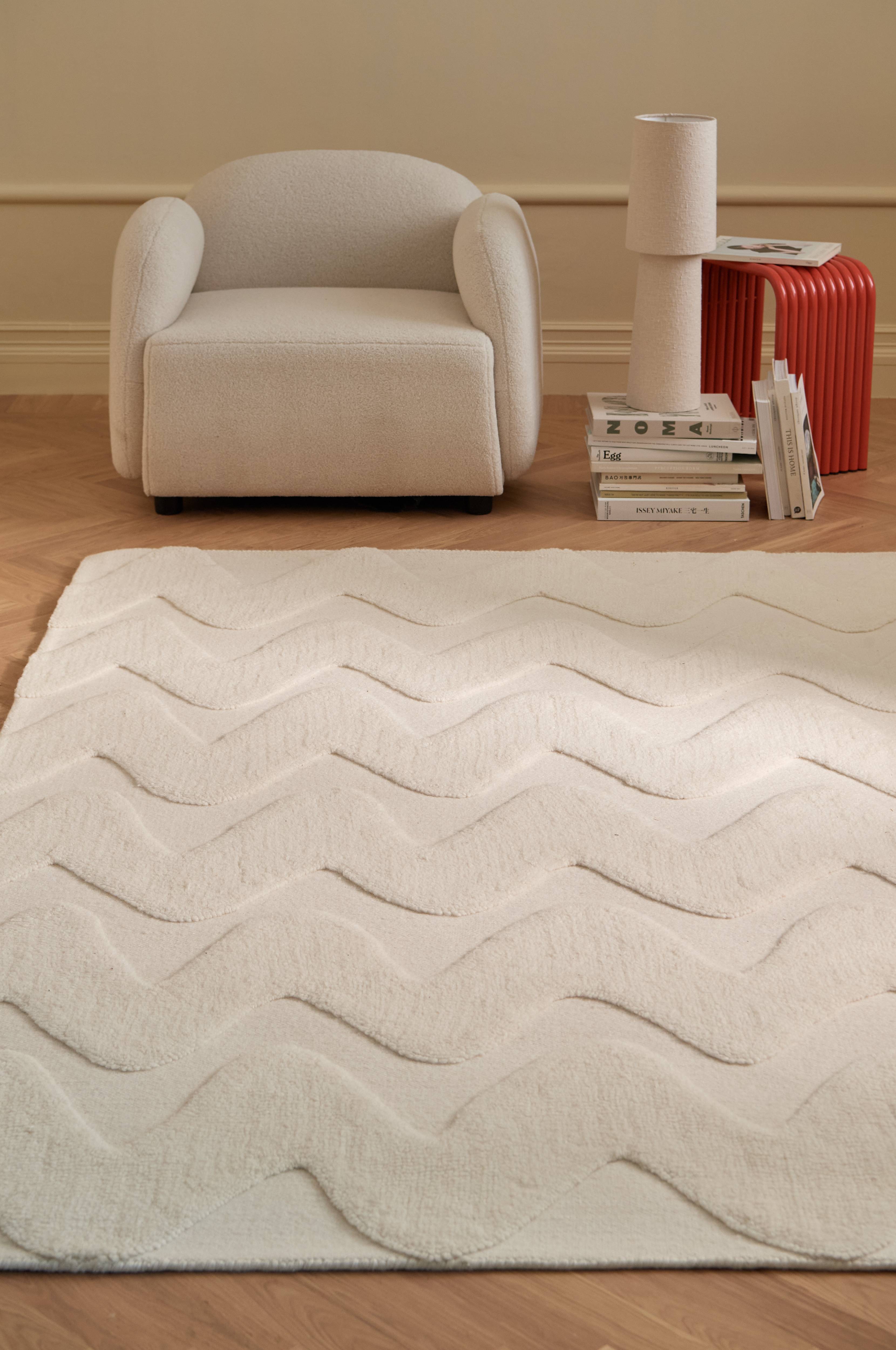 • Käsin tuftattu, helppohoitoinen villamatto kohokuviolla