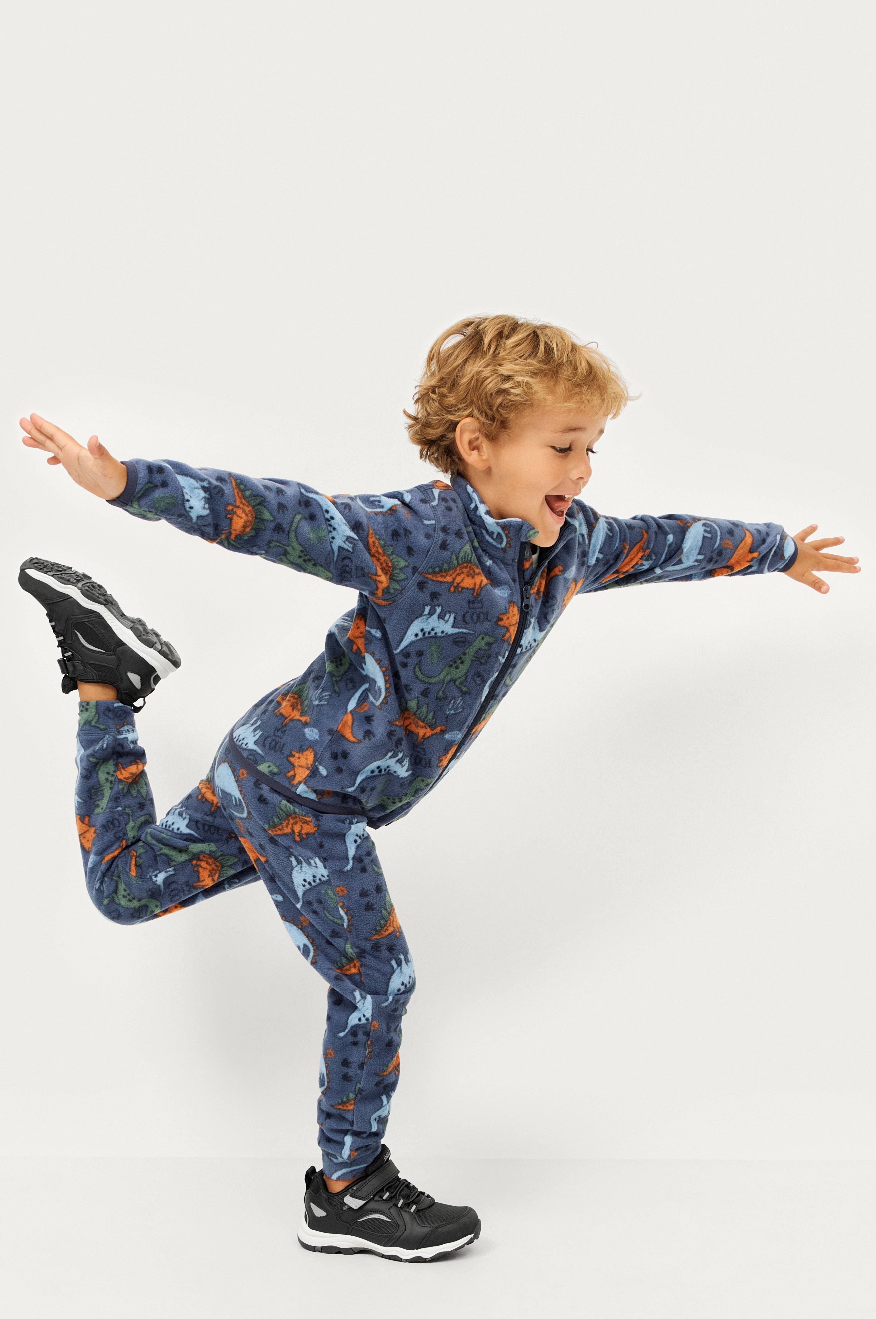 • Pehmeä malli fleeceestä • Takki korkealla kauluksella ja vetoketjulla edessä • Elastiset reunat • Housut pehmeällä kuminauhalla ylhäällä • Tuote sisältää kierrätettyä materiaalia, jonka käyttö vähentää jätteen määrää ja säästää luonnonvaroja.