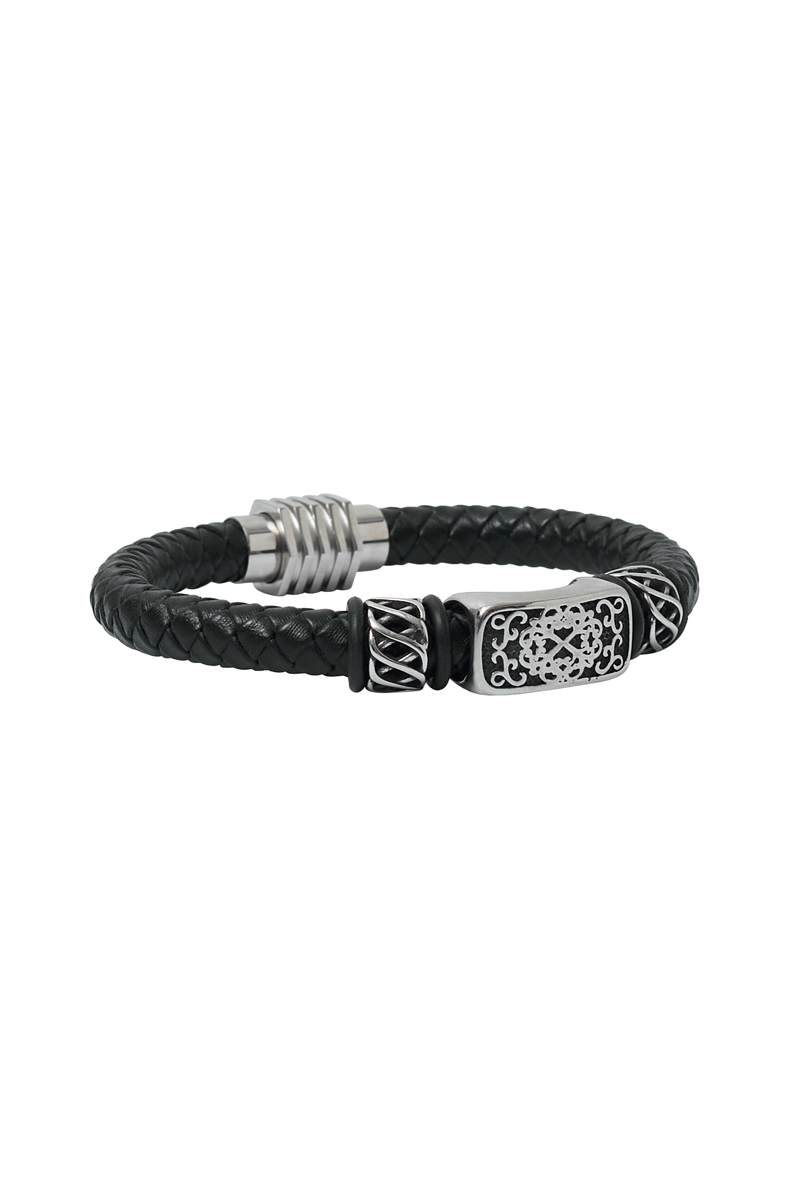 Nahkainen rannekoru, jossa metallisolki. Koostuu useasta kapeasta nauhasta, jotka kiinnittyvät metallisolkeen. Kolme erilaista vaihtoehtoa. Pituus n. 20,5 cm.