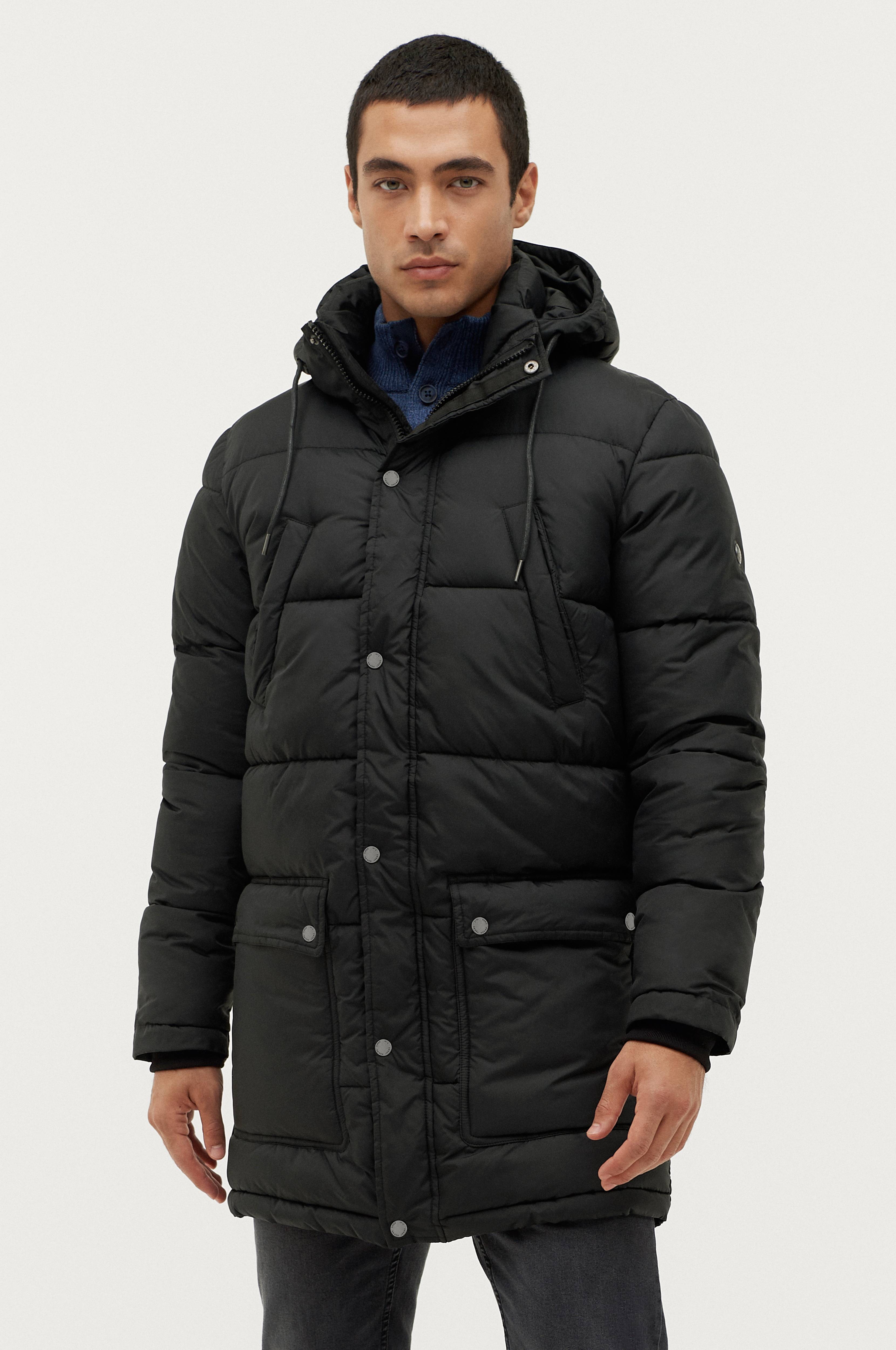 Pitkä toppatakki, jossa leveä joustinneulos.