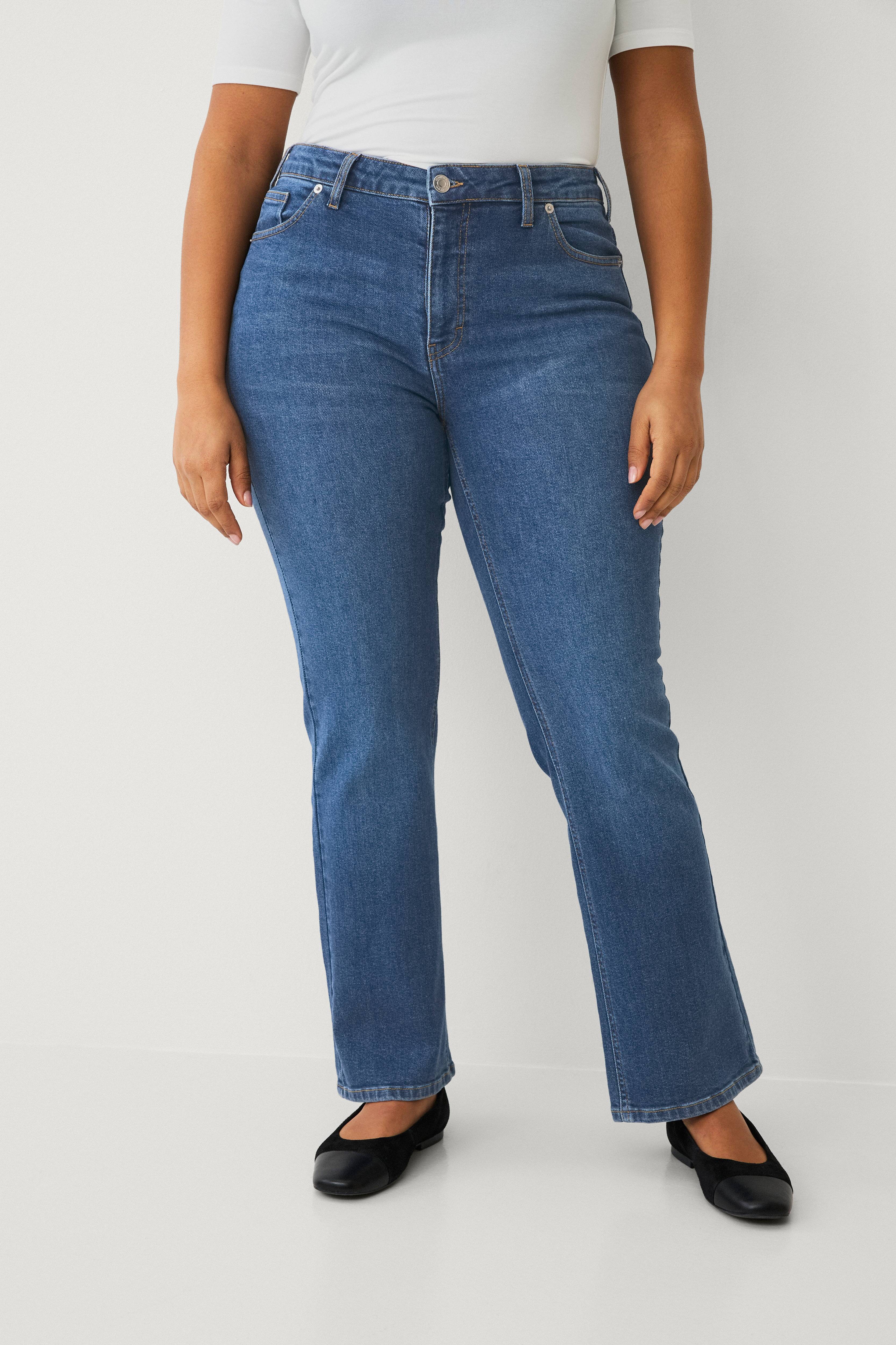 • Plus-koot• 5-taskuinen malli korkealla vyötäröllä• Vetoketjusepalus• Levenevät lahkeen reunat• Lahkeen sisäpituus: 78 cm koossa 44