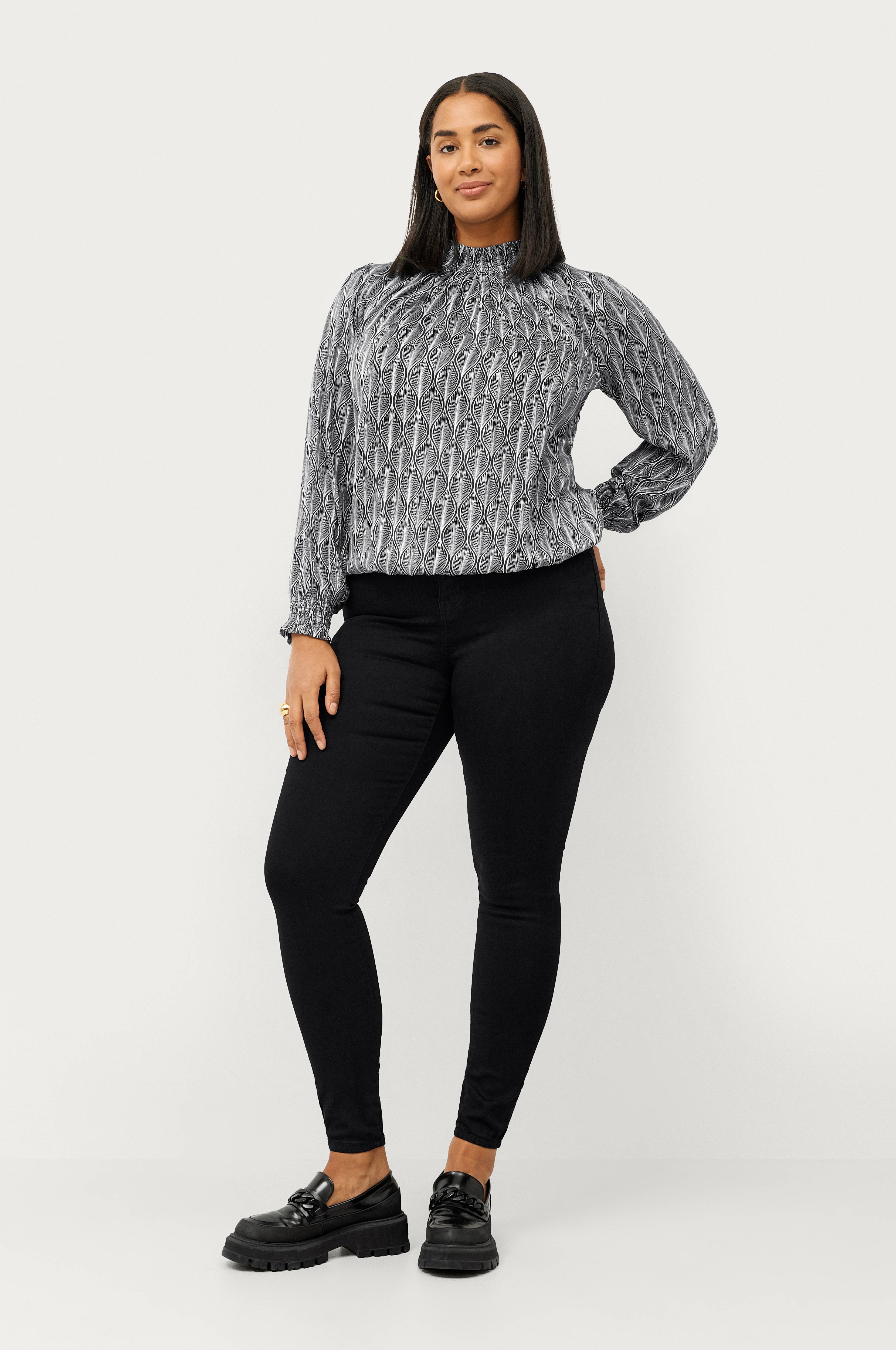 Becca-farkut, joissa korkea vyötärö ja etuhalkiossa napit. Eteenpäin kiertyvät ulkosivusaumat ja kapenevat lahkeensuut. Kolme etutaskua ja kaksi päälleommeltua takataskua. Lahkeen sisäpituus n. 72 cm joka koossa.