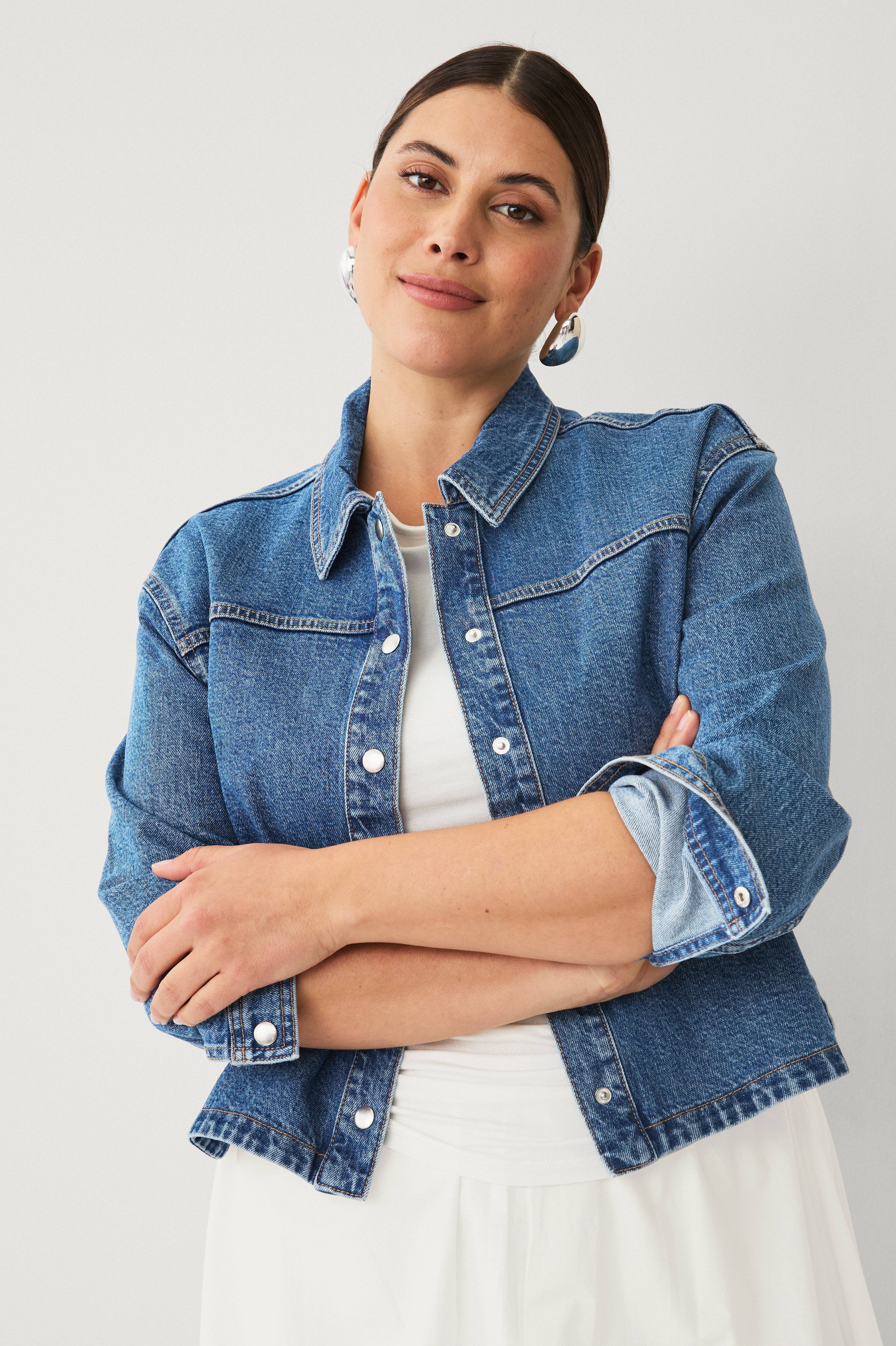 • Farkkutakki laatikkomallisella, lyhyellä istuvuudella