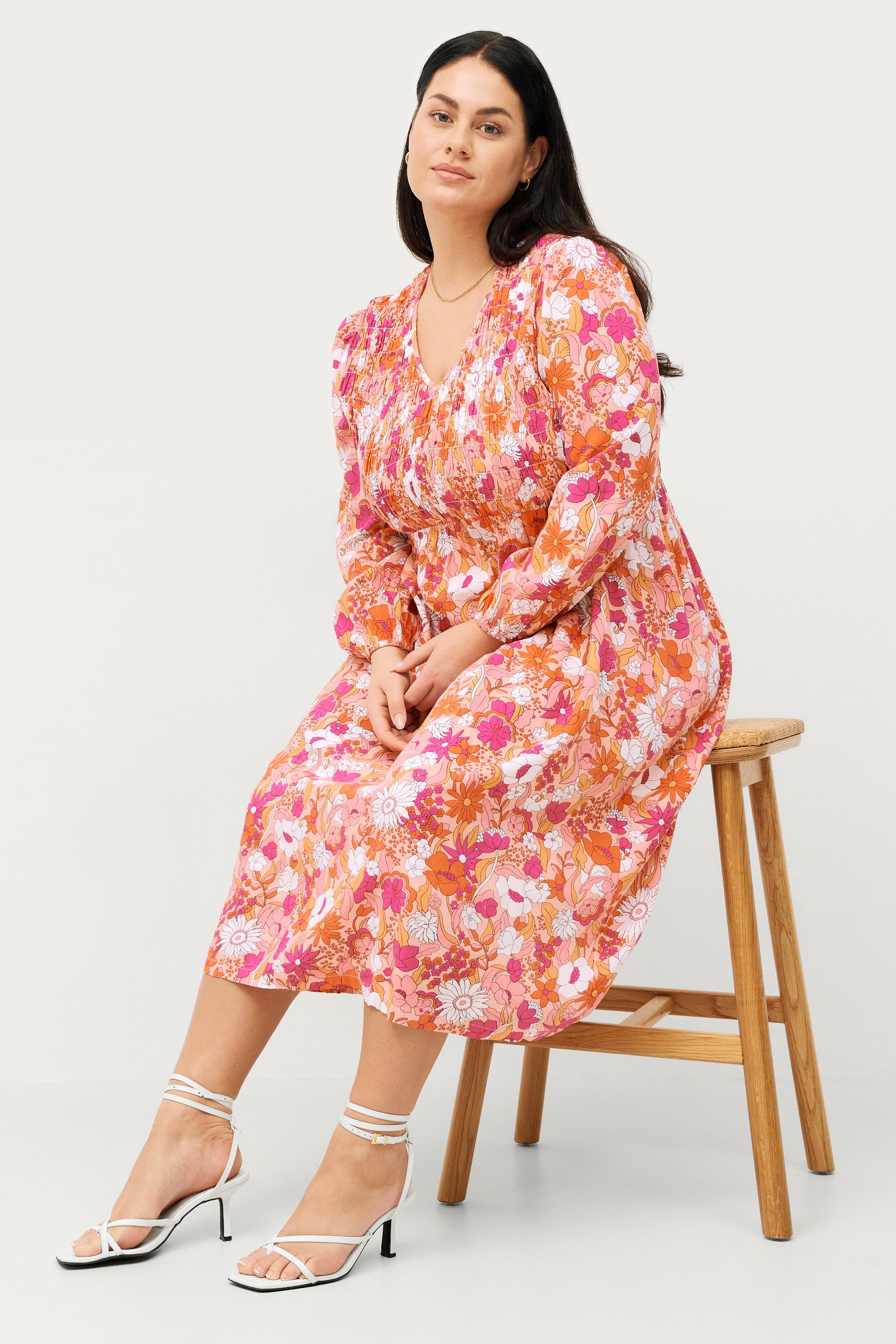 • Plus-koot • Levenevä malli • Elastiset saumat ylhäällä • V-muotoinen kaula • Pitkät bubble-hihat joustavalla hihansuulla • Pituus: 118 cm koossa 42/44