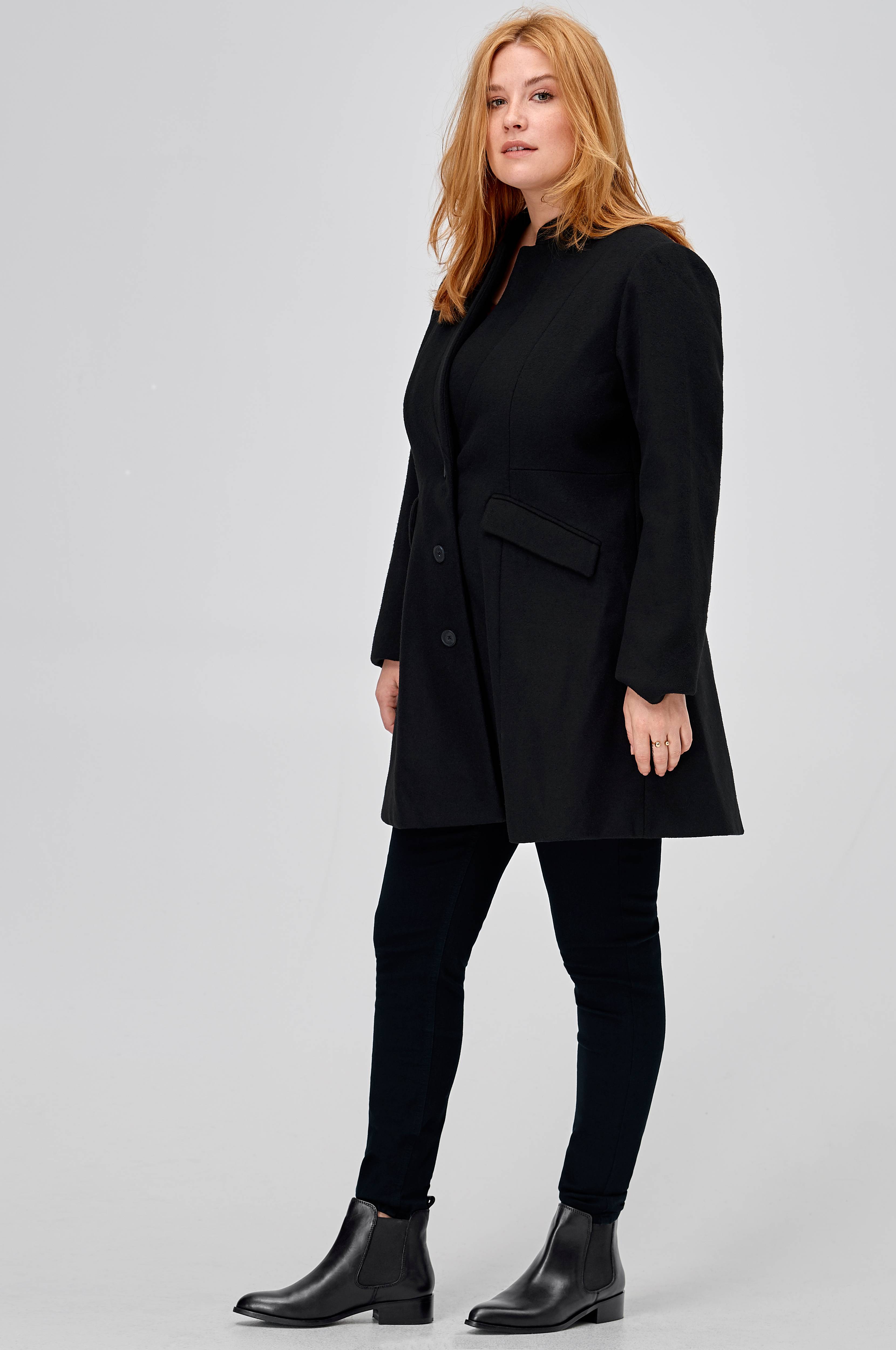 Tämä sopi minun vartalolleni hämmästyttävän hyvin. Muuten antaisin viisi tähteä, mutta talvitakiksi vähän turhan avara kaula-aukko (napit alkavat vasta rinnan alapuolelta). Taskuja kaipaisin…