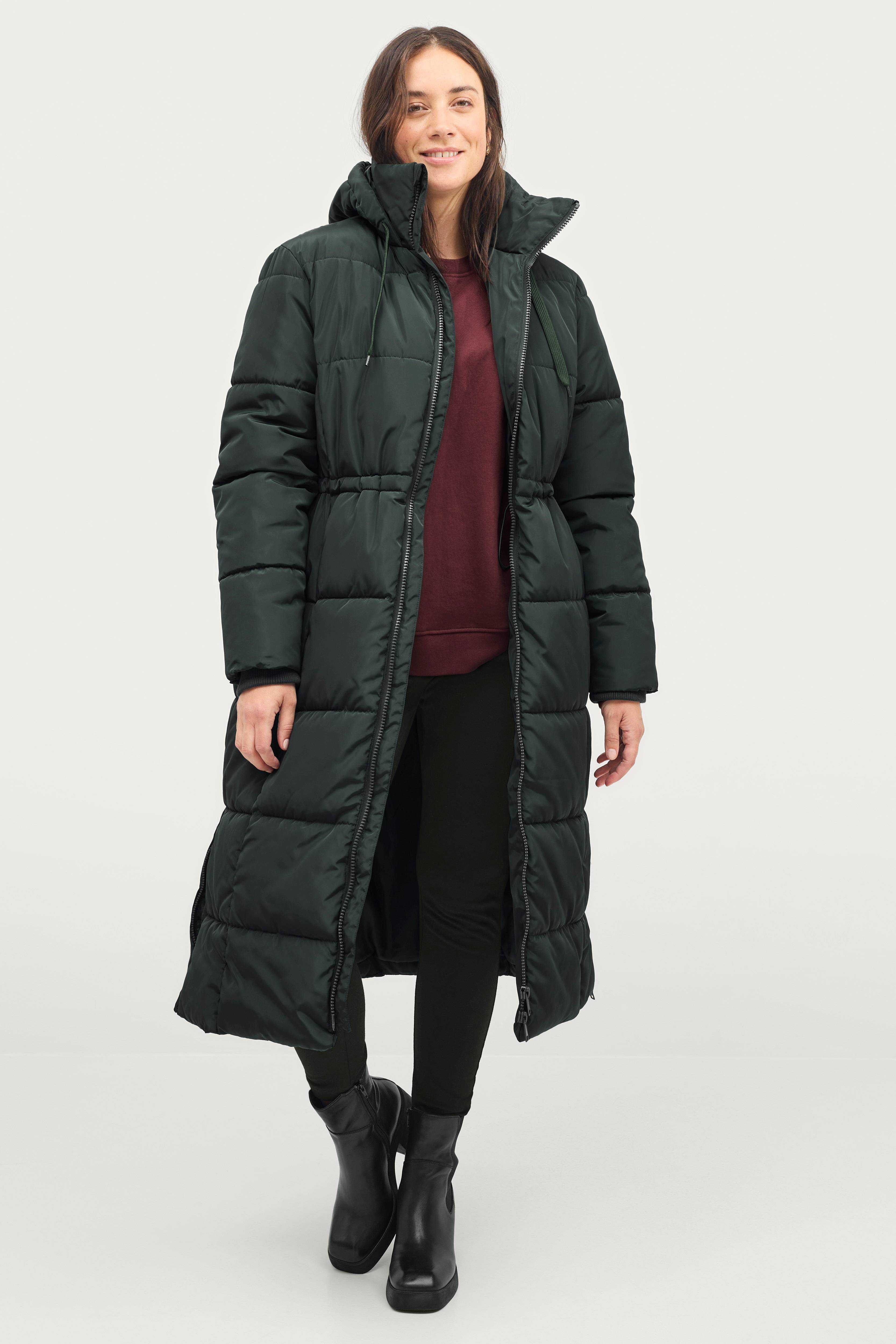 Pitkä, lämmin ja mukava. Olen pystynyt käyttämään monia kerroksia alla ilman, että olisi tullut ahdasta tai kylmää. Tähän mennessä olen ollut ulkona 12 asteen pakkasessa. Ainoa miinus…