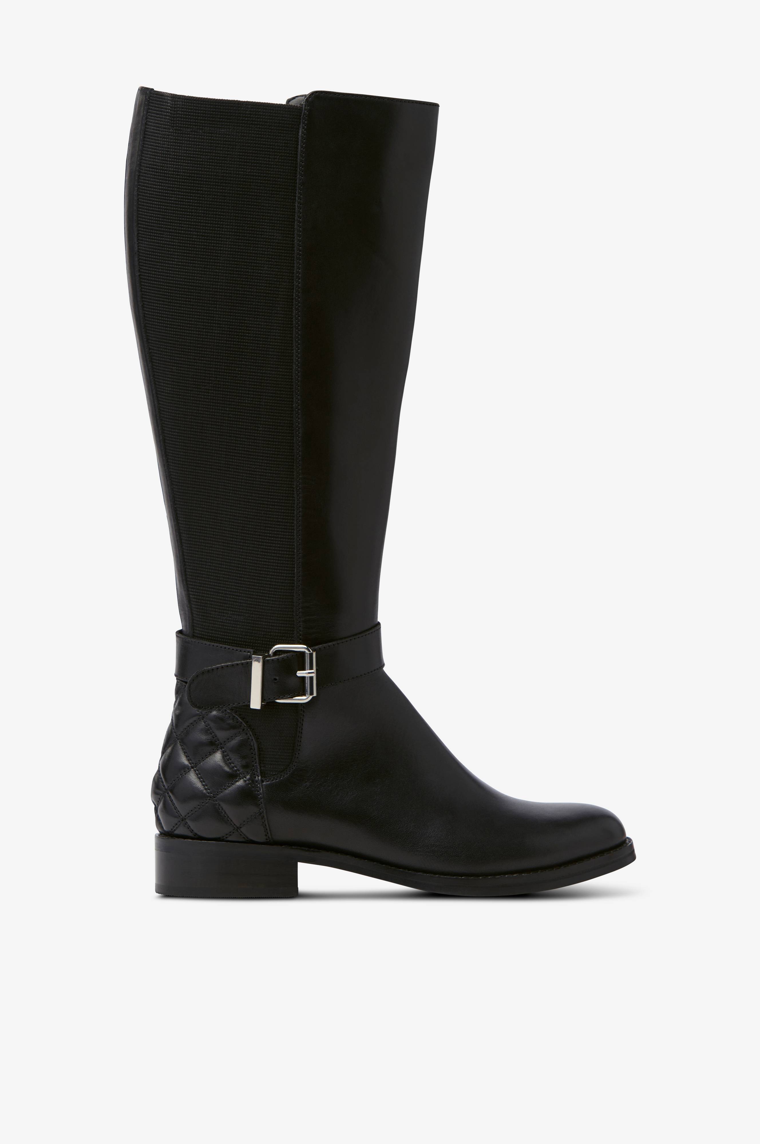 Pitkävartiset saappaat, joissa klassinen ratsastussaapasmalli. Tikattu osio takana kannassa ja joustavat kangasosiot varressa. Sileää, laadukasta nahkaa. Nilkassa säädettävä remmi, jossa solki. Pehmustettu sisäpohja nahkaa. Varren korkeus n. 39 cm. Koron korkeus n. 3 cm.