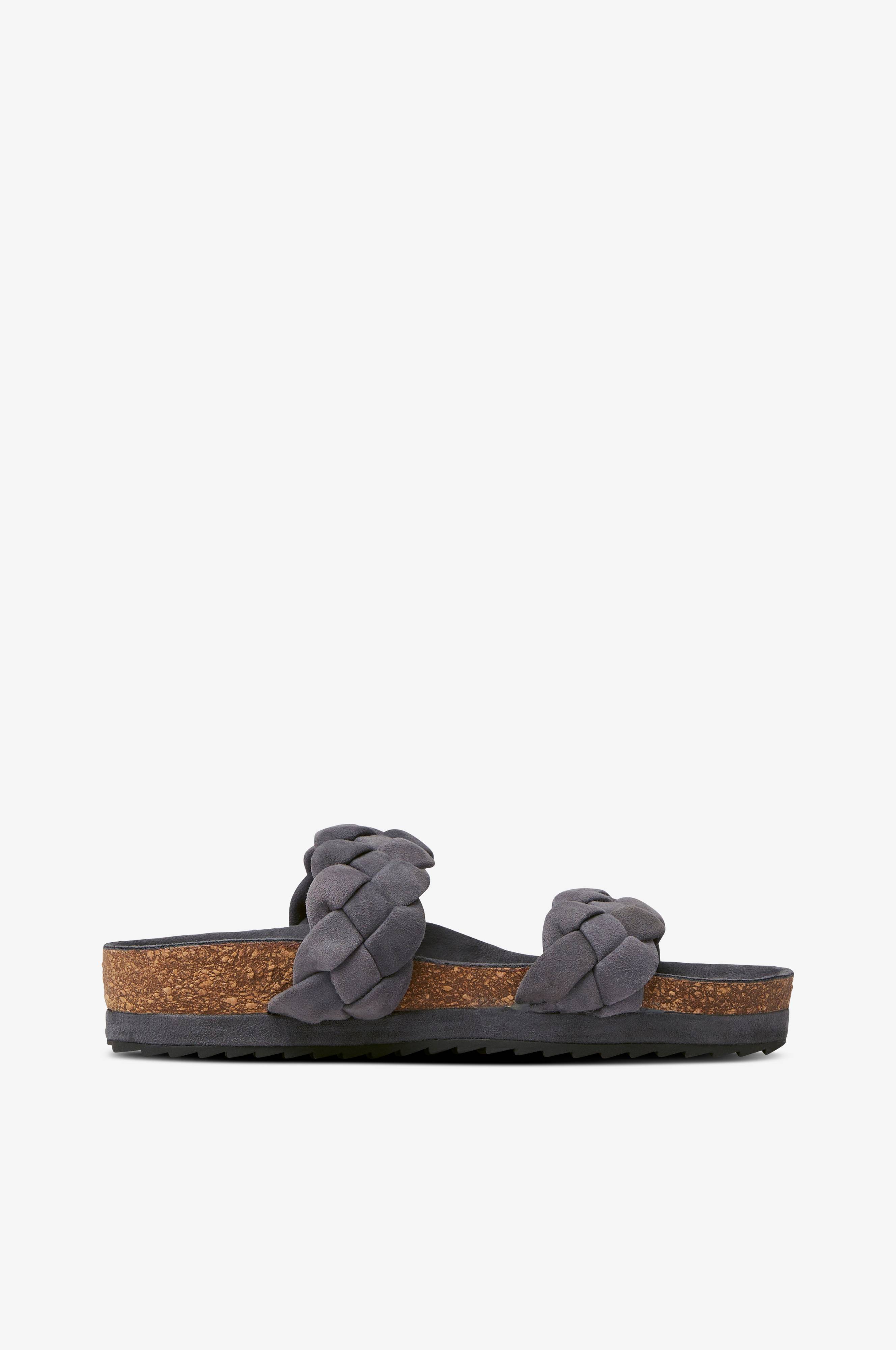 Sandaalit, joissa punotut mokkaremmit ja jalan mukaan muotoiltu, mokkapäällysteinen sisäpohja. Korkkivälipohja ja joustava, kuvioitu ulkopohja.