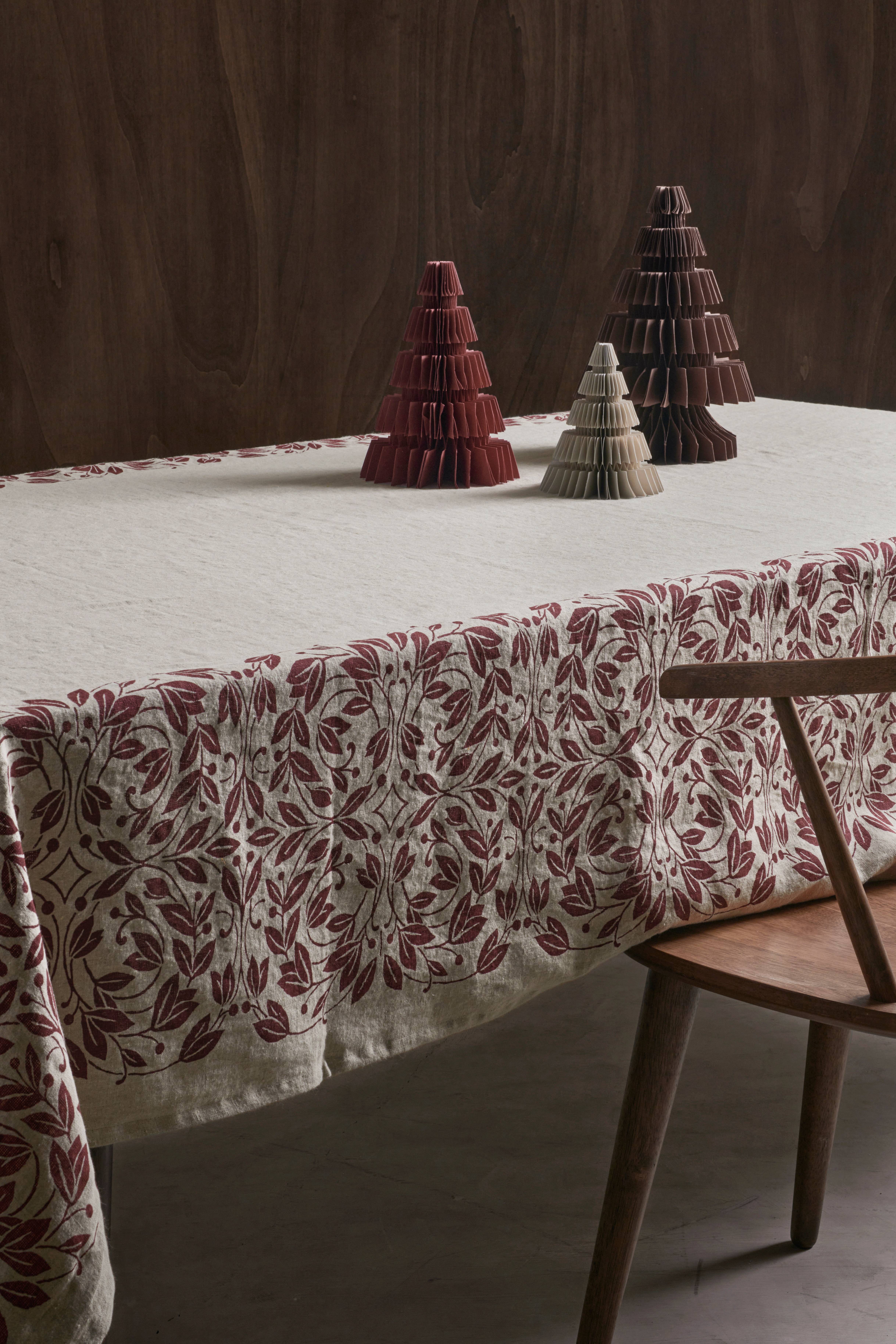 Pöytäliina pehmeäksi pestyä 100% pellavaa. Painettu kuvio luonnonvärisellä pohjalla.