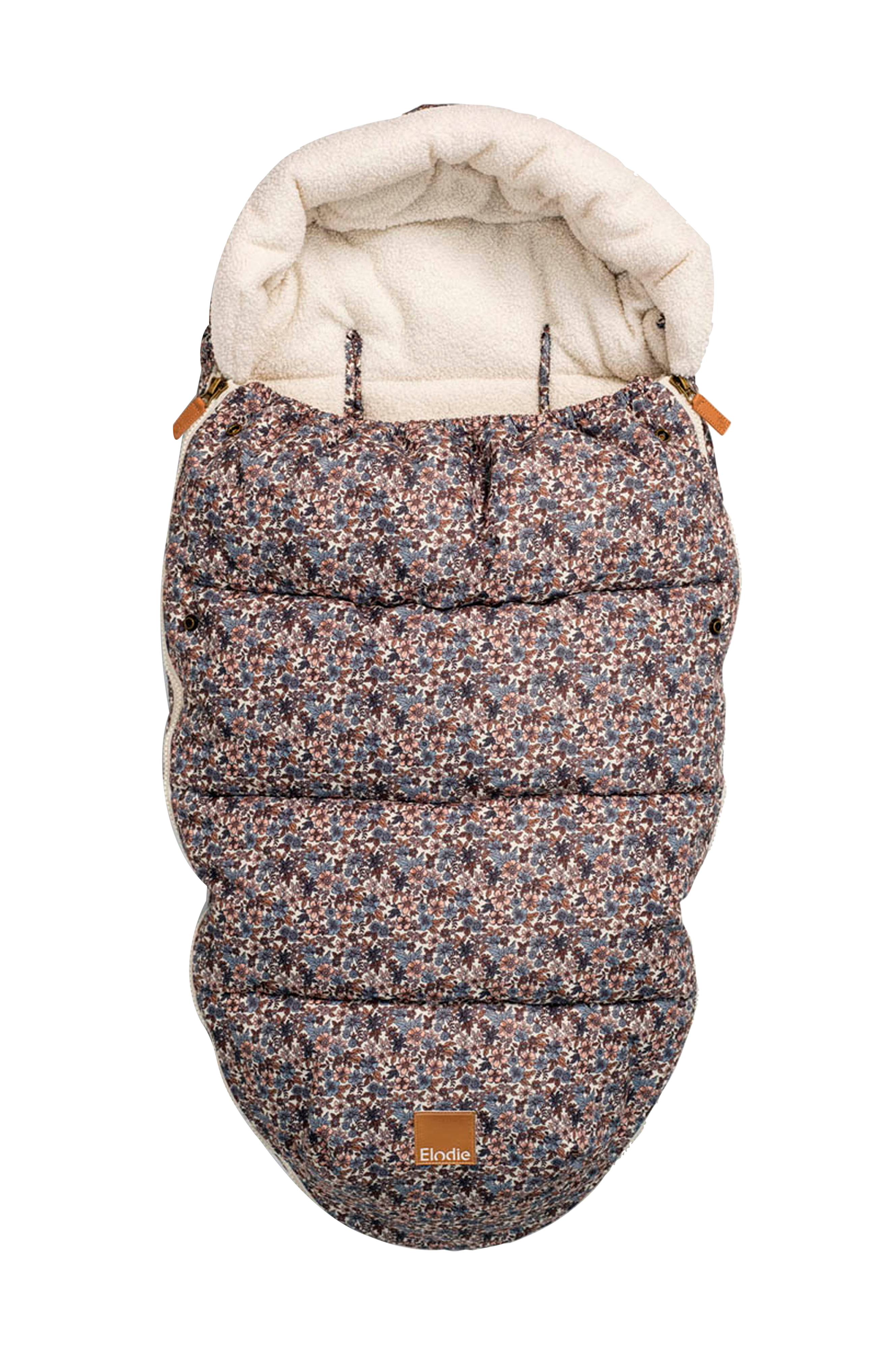 Lämpöpussissa on monia käytännöllisiä toimintoja, kuten vettä hylkivä päällyskangas, lastenvaunujen vöille mukautetut reiät ja takana tasku, joka pujotetaan vaunujen selkänojan yli ehkäisemään lämpöpussin alaspäin valumista.