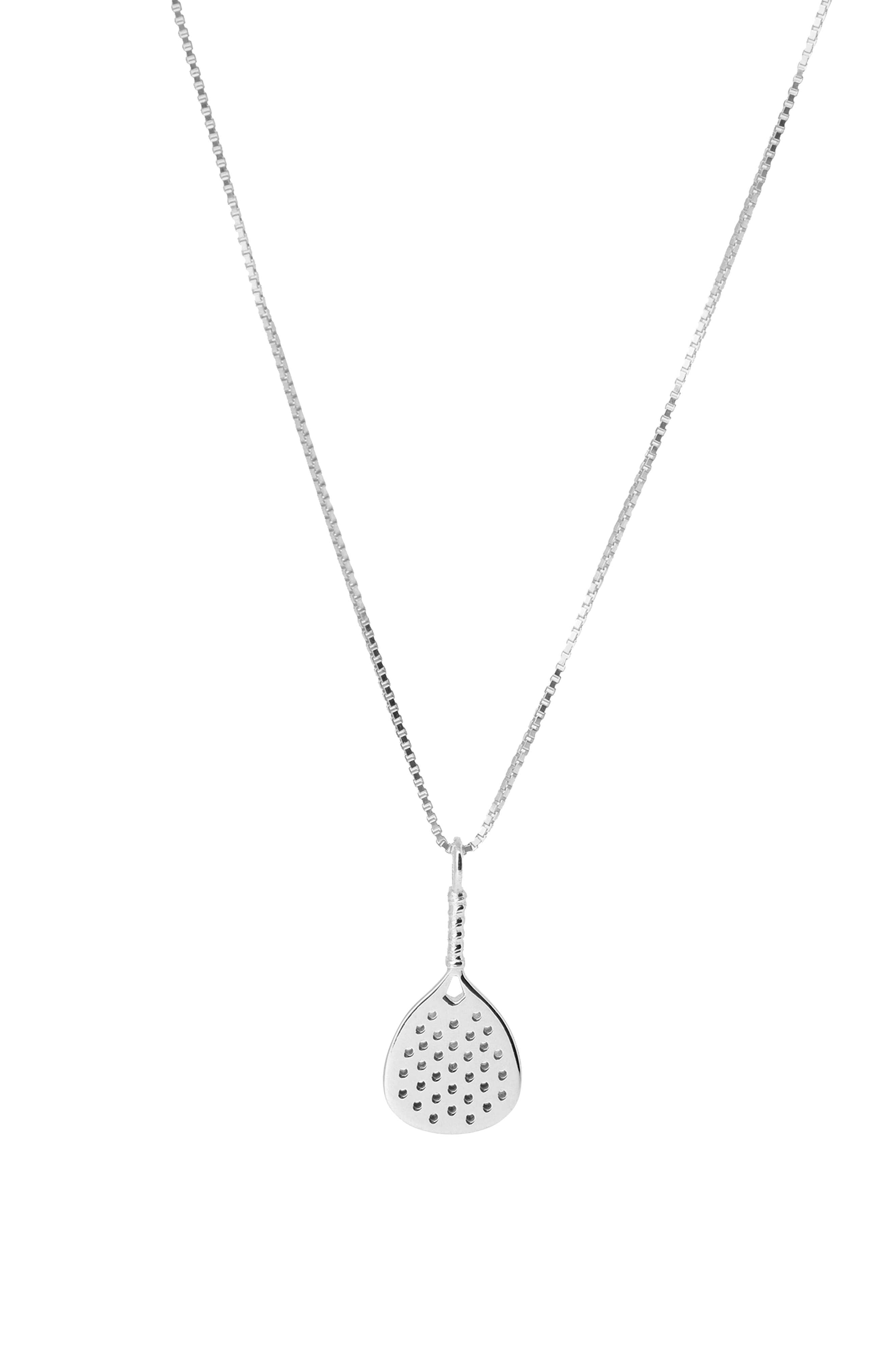 Ohut ketju, jossa pieni padelmailan muotoinen riipus. Hopeanvärinen Sterling-hopeaa ja kullanvärinen 18 karaatin kullattua messinkiä.Riipuksen koko 10 x 23 mm.