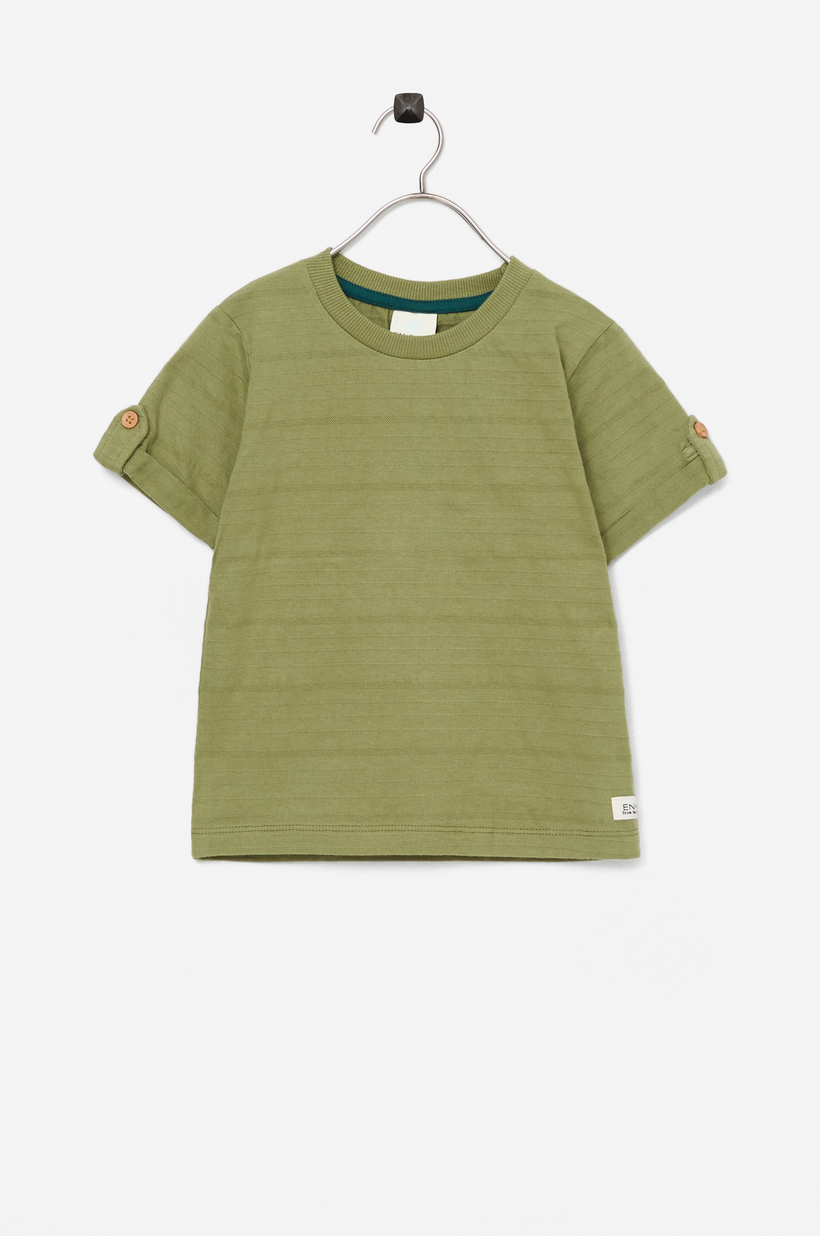 Lyhythihainen pusero joustavaa puuvillatrikoota. Hillityt koristesaumat. Pyöreä joustinneulospääntie. Lahkeensuissa kiinniommeltu käänne ja napillinen tamppi.