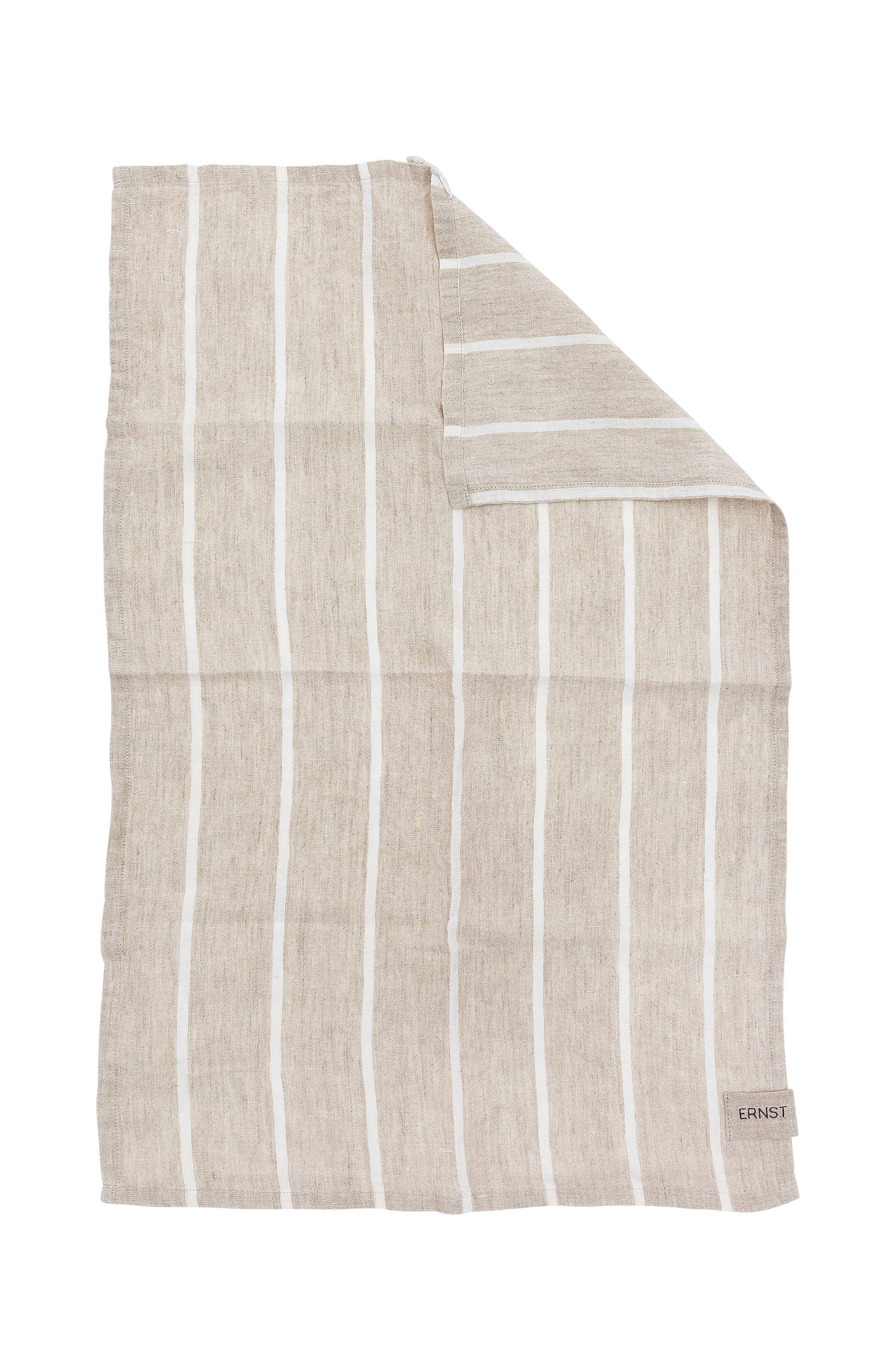 Pellavainen keittiöpyyhe on kaunis yksityiskohta keittiössä. Pellavanvärinen keittiöpyyhe, jossa hienot raidat.