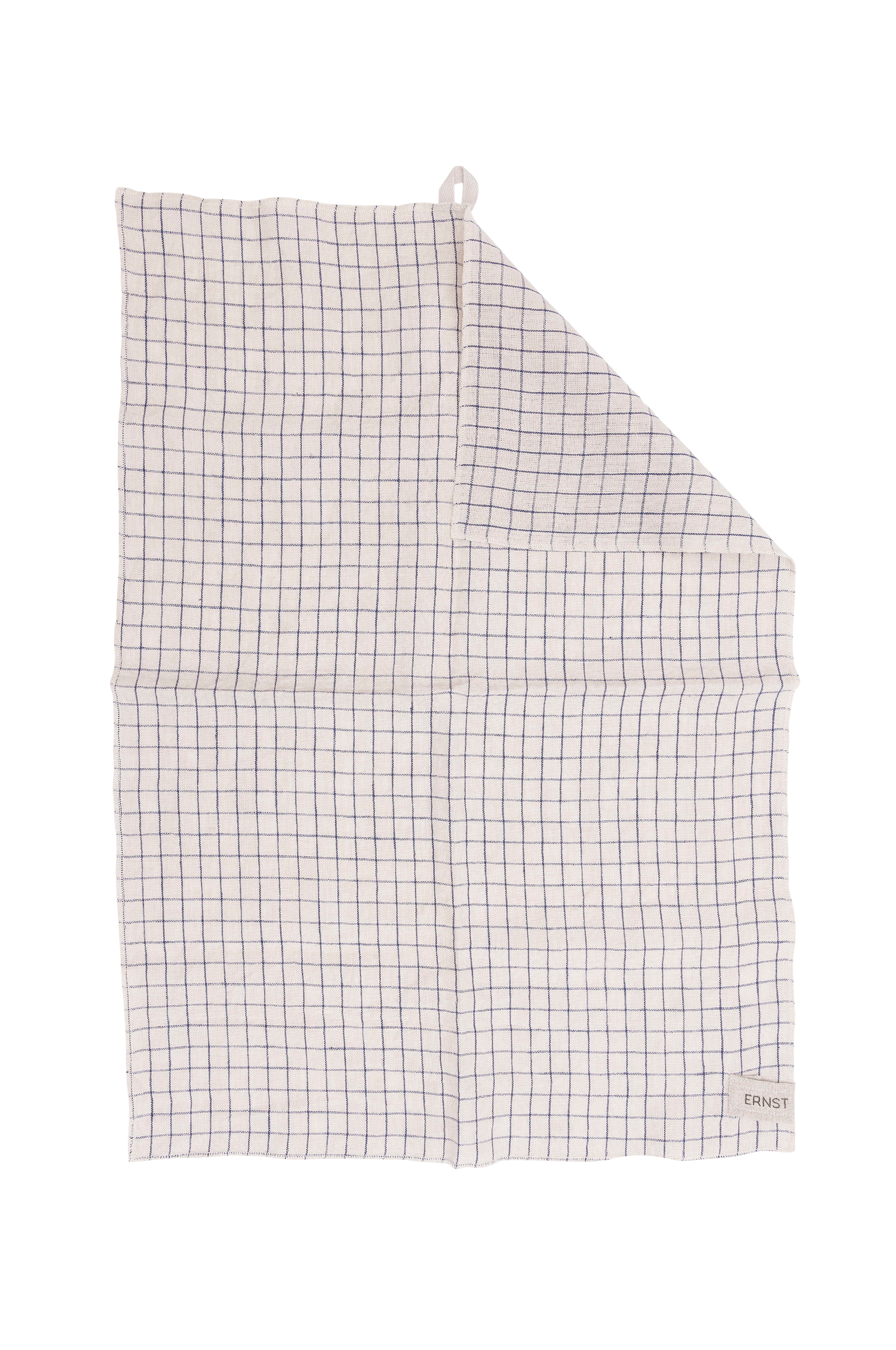 Pellavainen keittiöpyyhe on kaunis yksityiskohta keittiössä. Pellavanvärinen keittiöpyyhe, jossa hienot raidat.