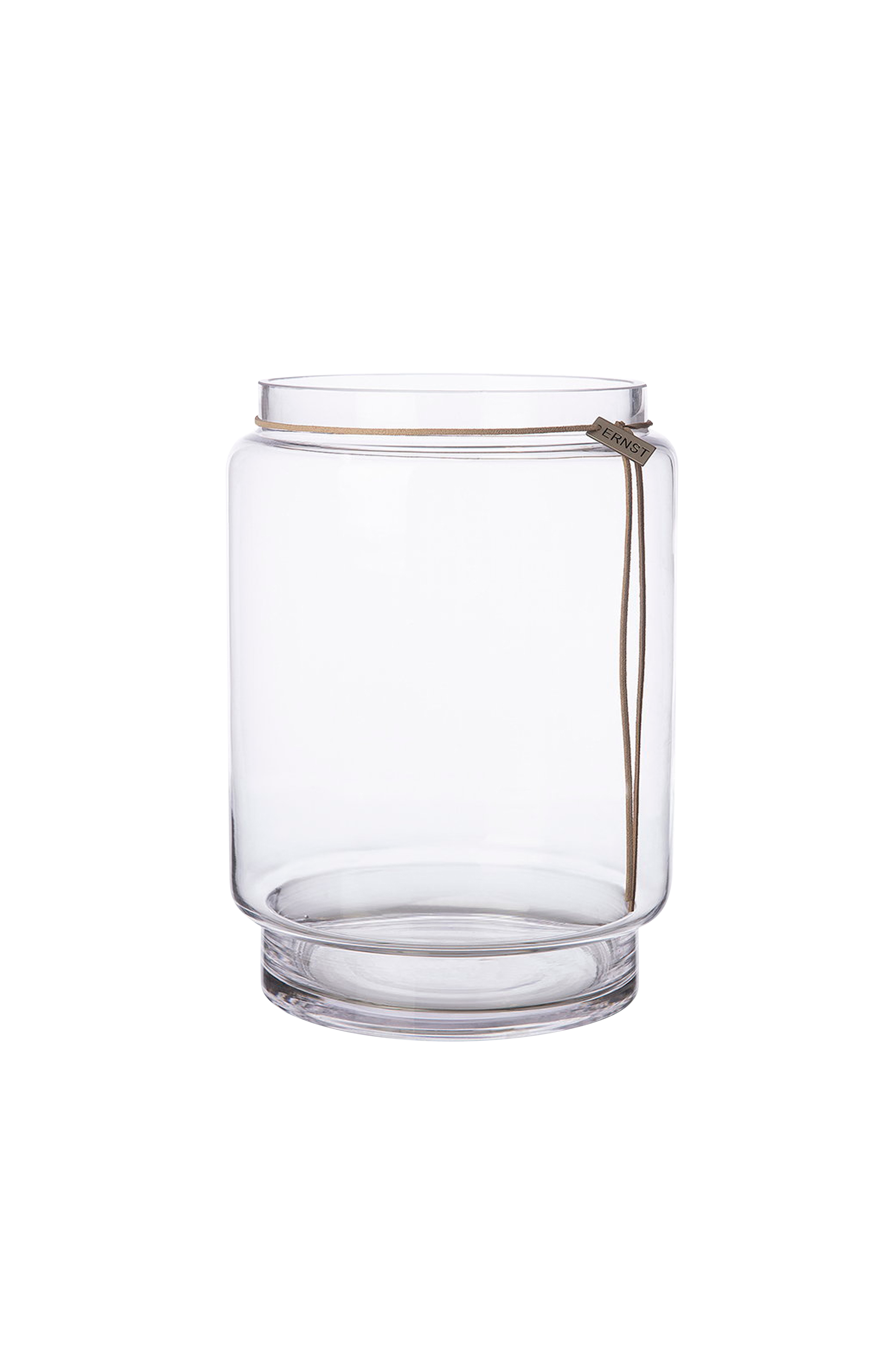 Leikkokukat tekevät sisustuksesta eloisan. Suoraan ERNST-lasimaljakkoon voit luoda kauniita kukka-asetelmia. Pieni kanta tekee maljakosta erityisen elegantin, ja klassinen nahkanauha on tyylikäs yksityiskohta. Sopii myös kynttilälyhdyksi.