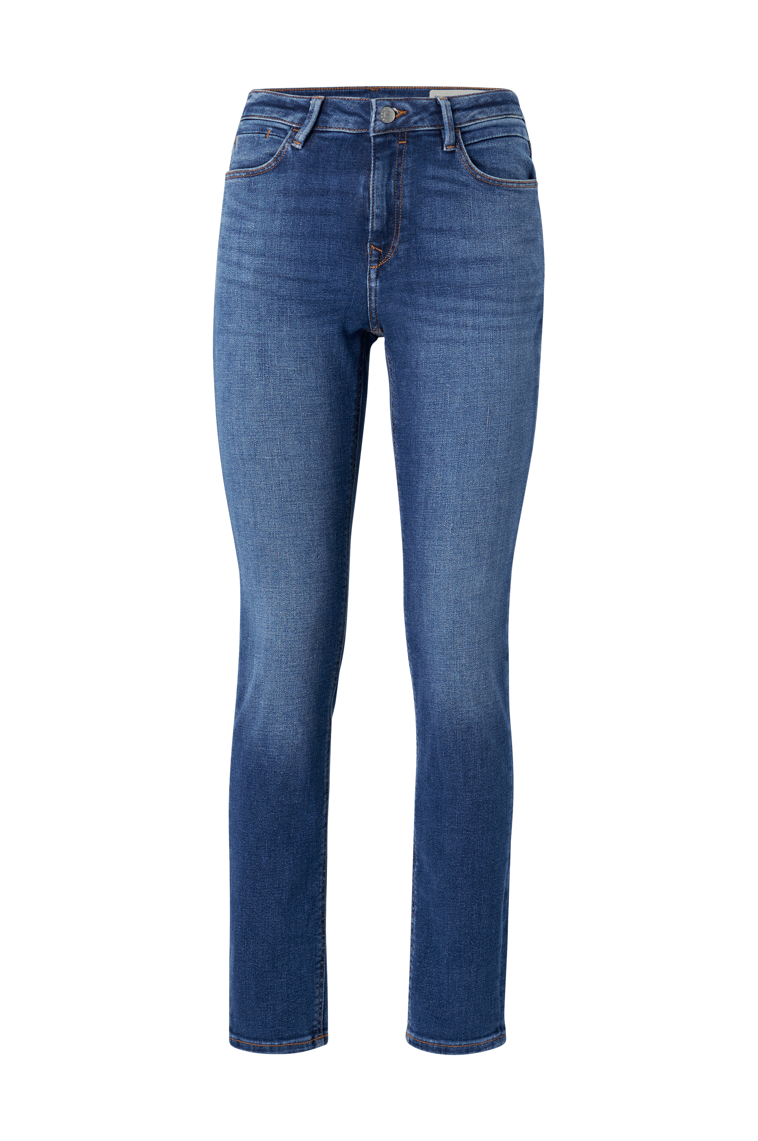 Esprit-farkut pehmeää ja joustavaa puuvilladenimiä. Kapea malli, jossa normaalikorkuinen vyötärö, viisi taskua ja vetoketjullinen etuhalkio.