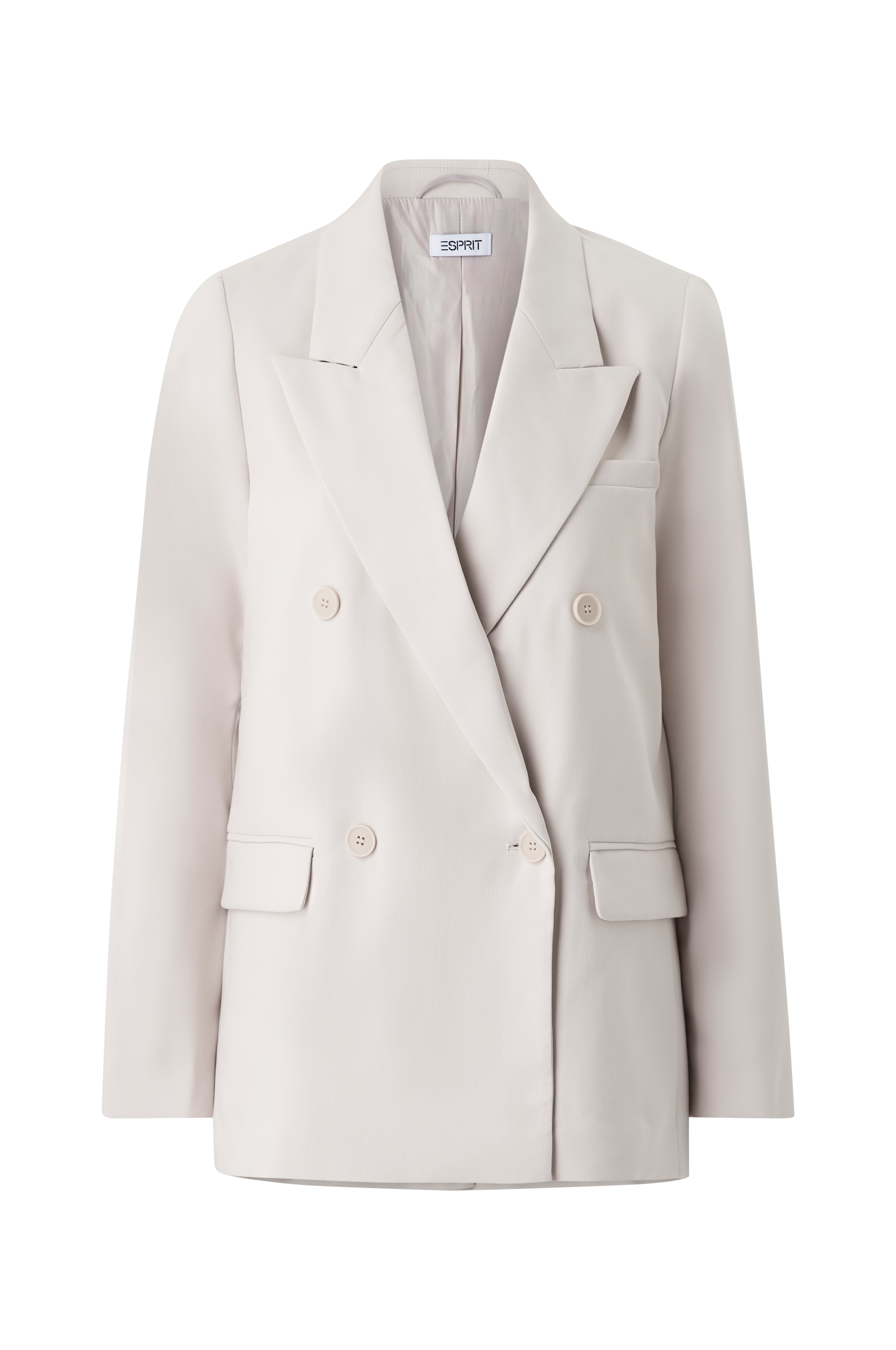 • Kaksirivinen bleiseri viskoosisekoitteesta• Terävät käänteet• Kevyesti topatut olkapäät• Kaksi taskua taskunkannella• Rintatasku• Yksi sisätasku napilla• Neljä koristenappia hihansuissa• Halkio alhaalla takana• Kudottu vuori• Pituus: 72 cm koossa 36