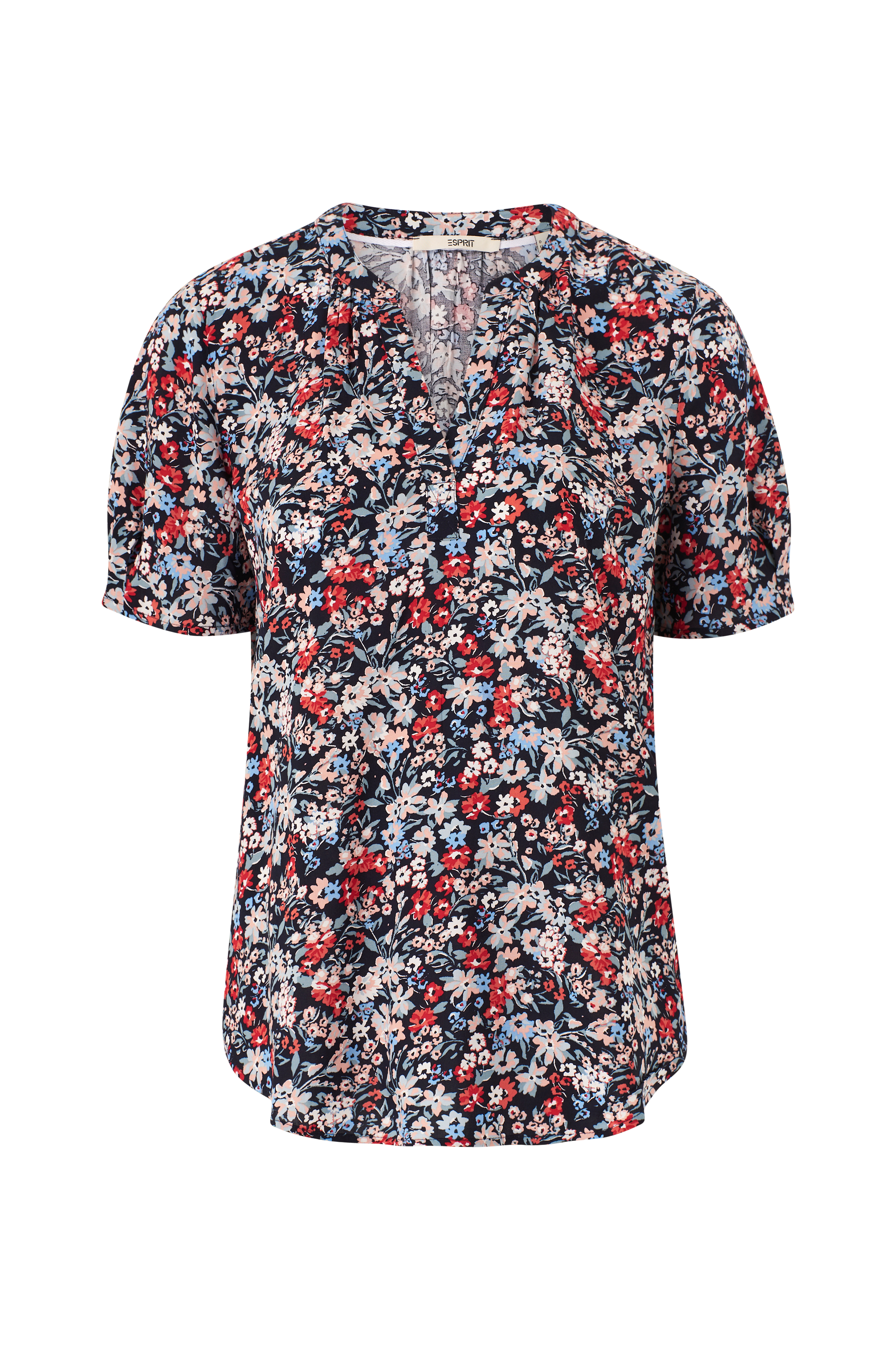 • Kuvioitu pusero viskoosista• V-kaula-aukko• Lyhyet hihat• Pyöristetty helma