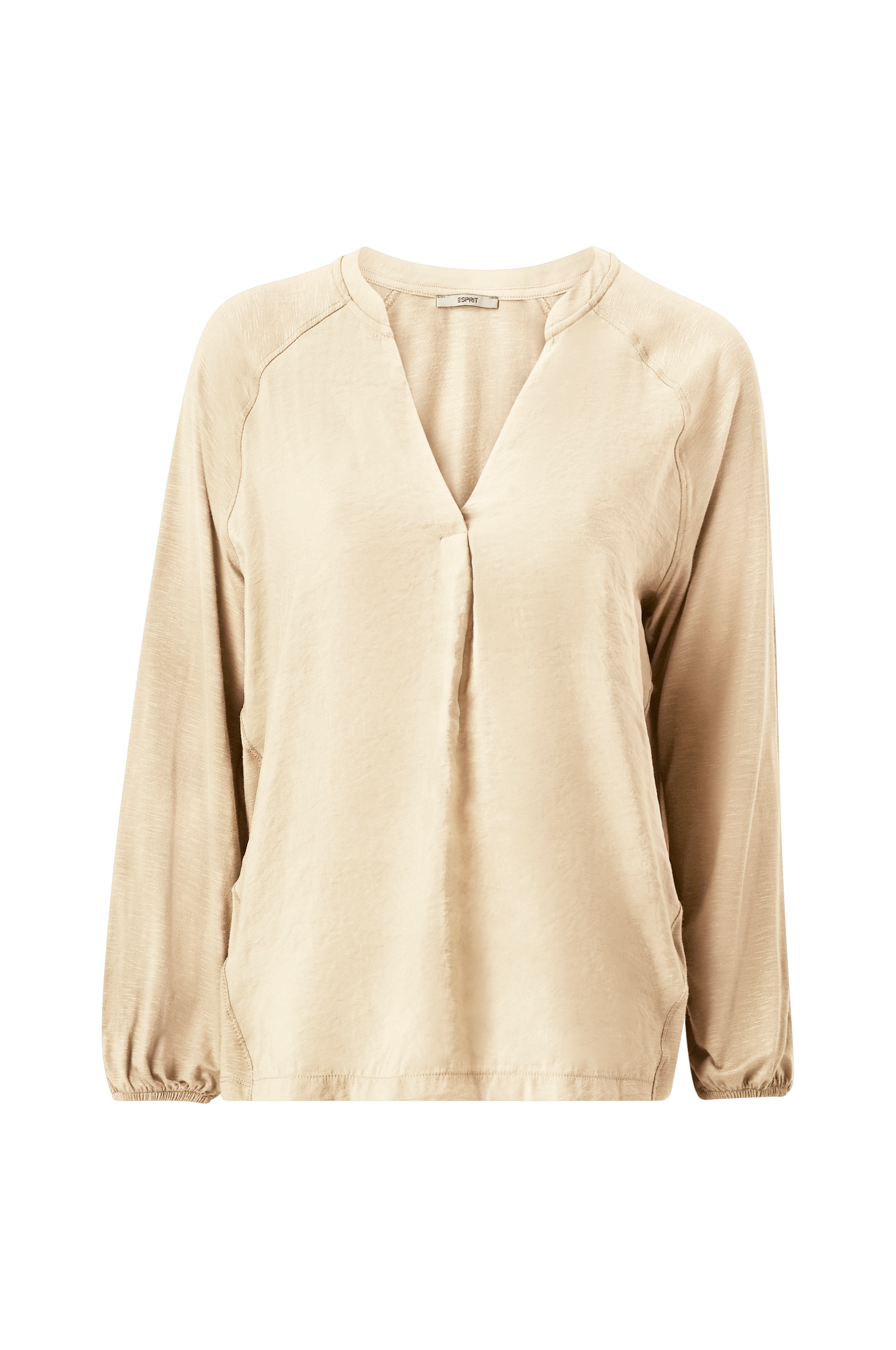 Pusero, jossa V-pääntie ja raglanhihat. Edessä ryppypintaista materiaalia. Takakappale ja hihat trikoota. Kuminauha hihansuissa.
