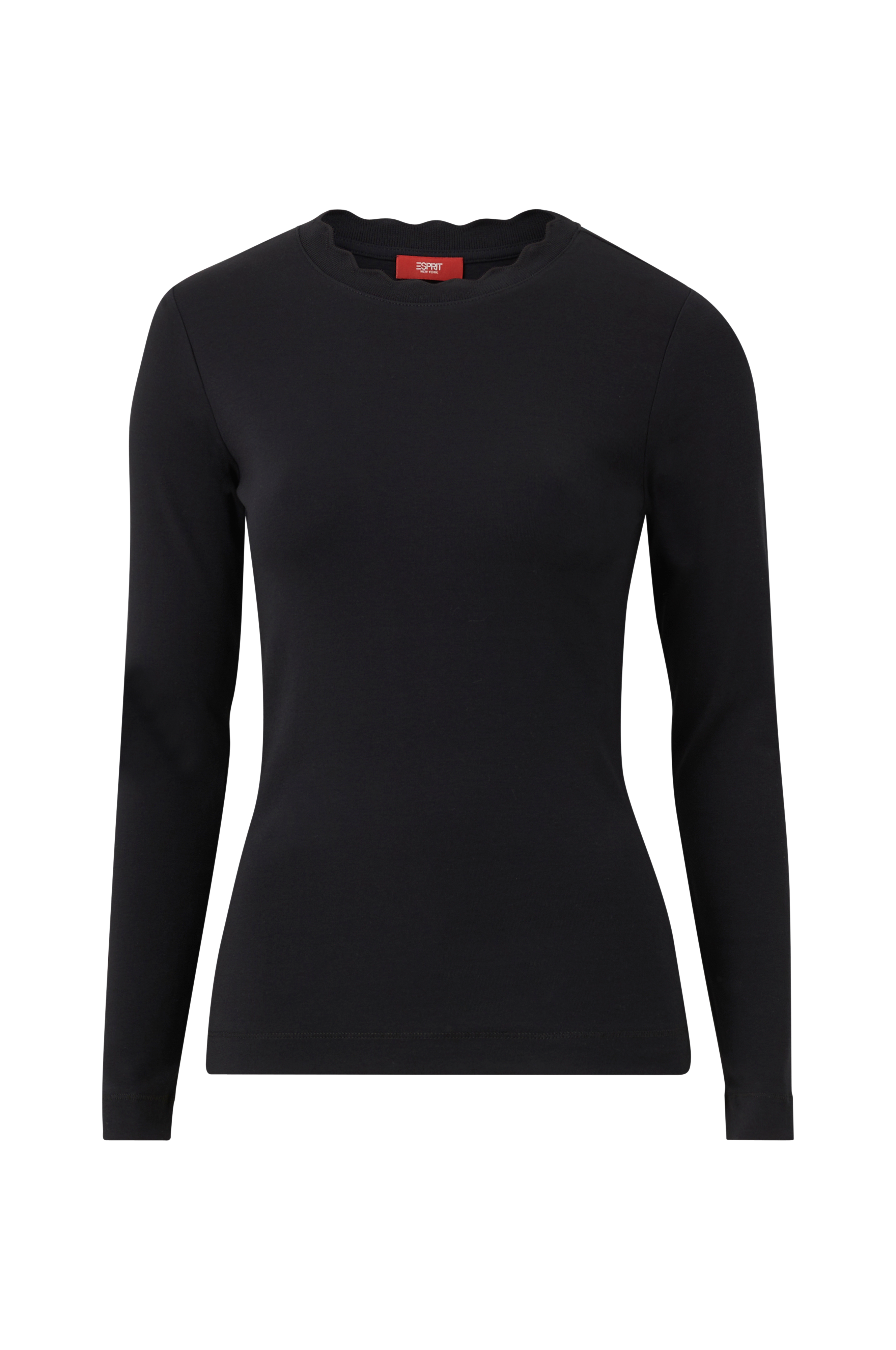 • Ihonmyötäinen malli trikoosta• Pyöreä pääntie aaltoilevalla, resorimaisella reunalla• Pitkä hiha
